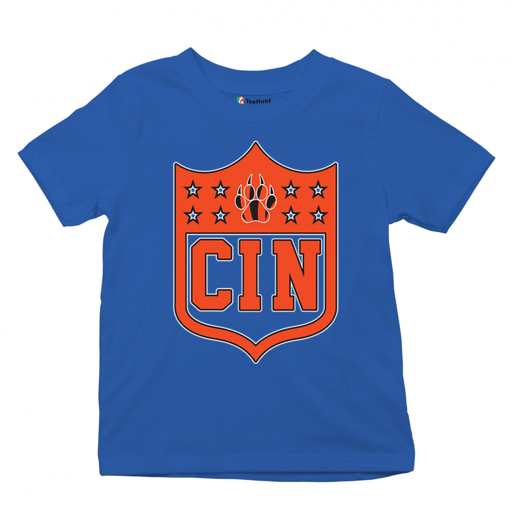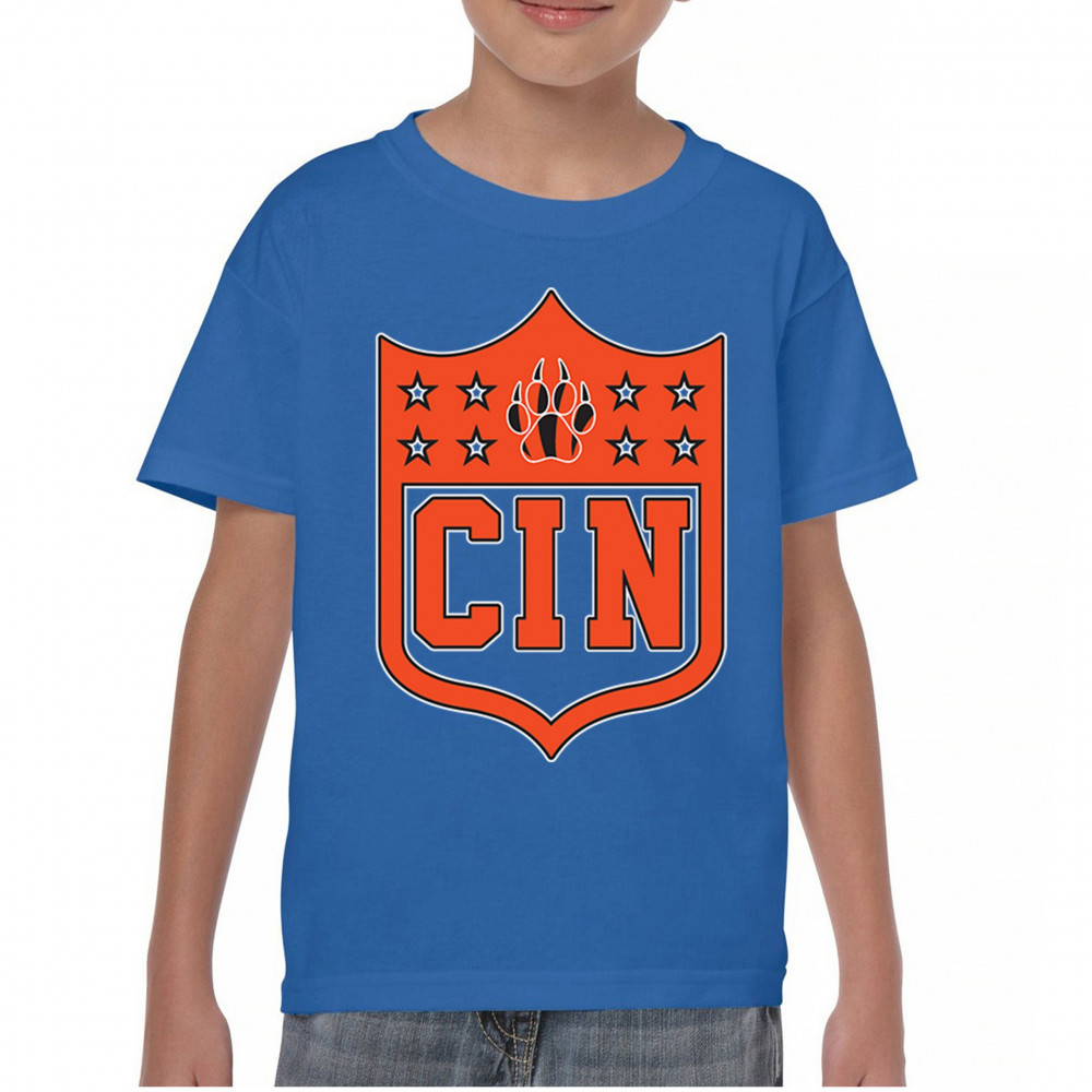 Bold CIN paw shield for Cincinnati football fans. Retro crest style, underdog spirit, and vintage game day gear for true Cincinnati grit.