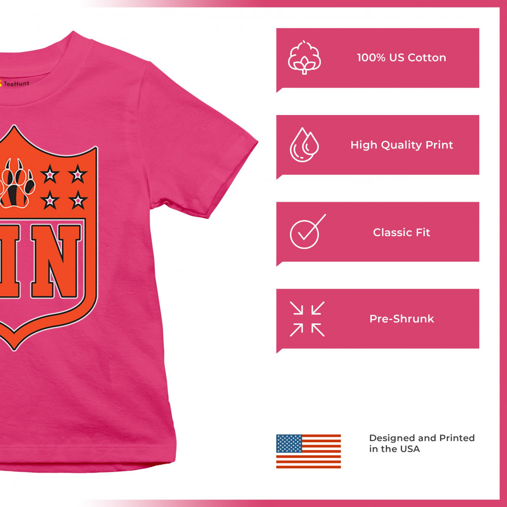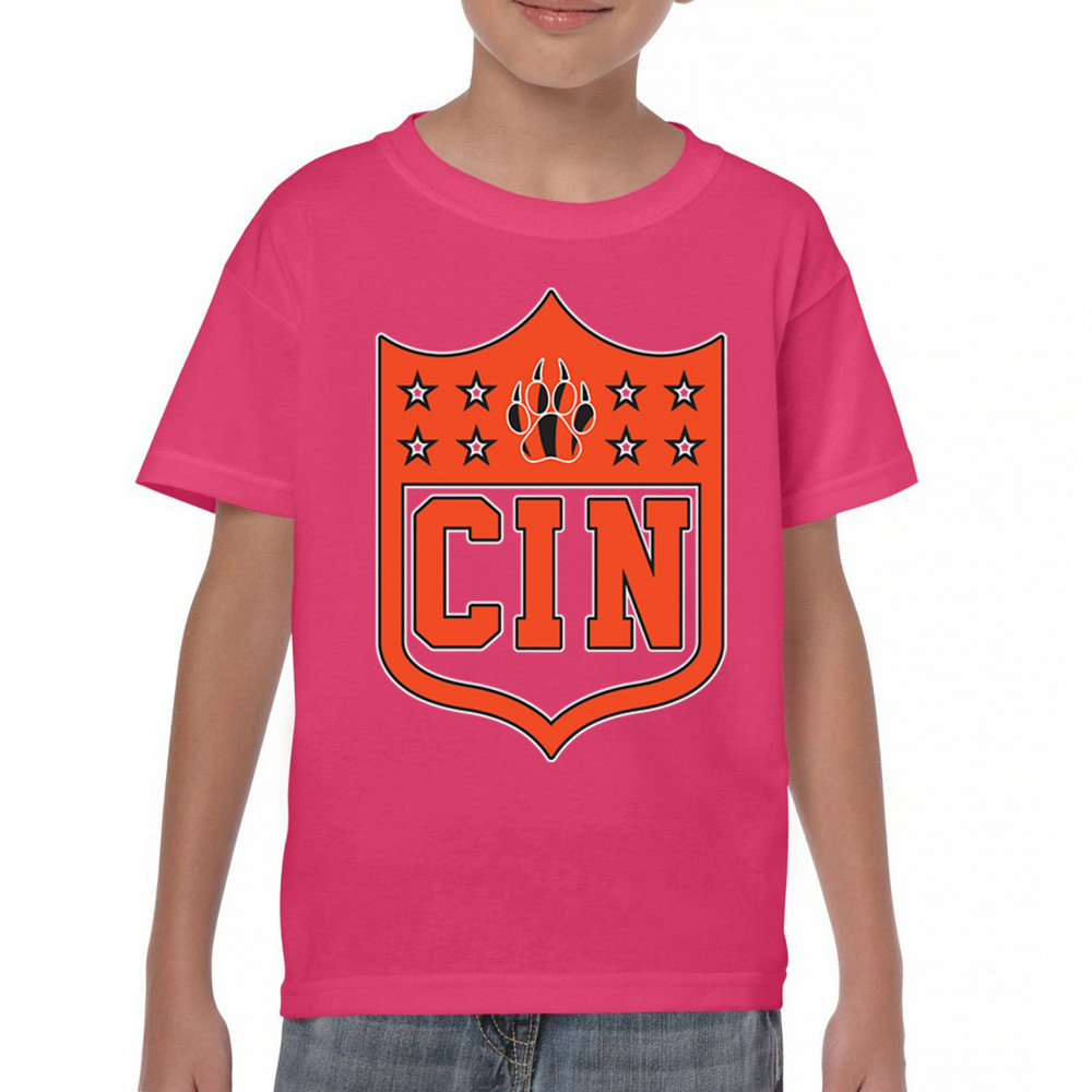 Bold CIN paw shield for Cincinnati football fans. Retro crest style, underdog spirit, and vintage game day gear for true Cincinnati grit.