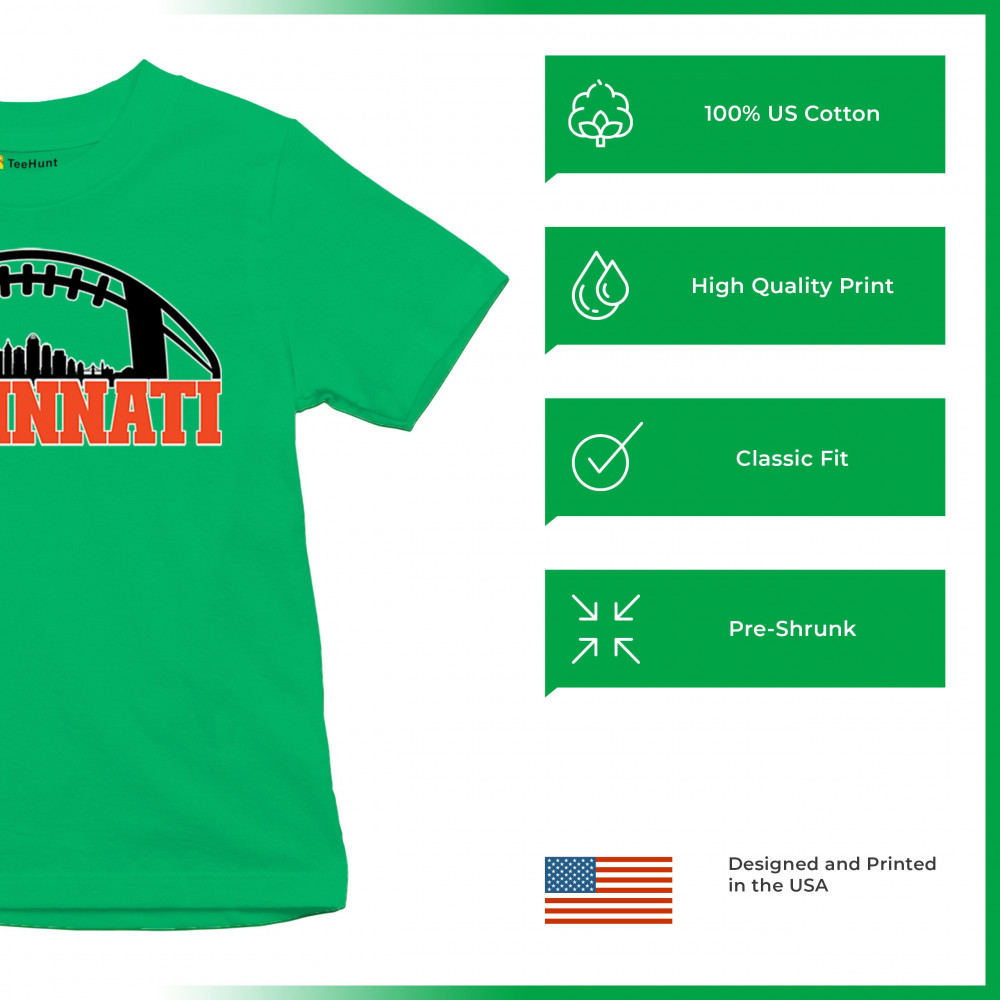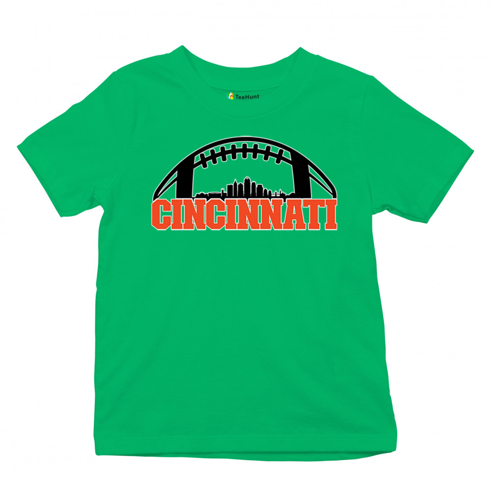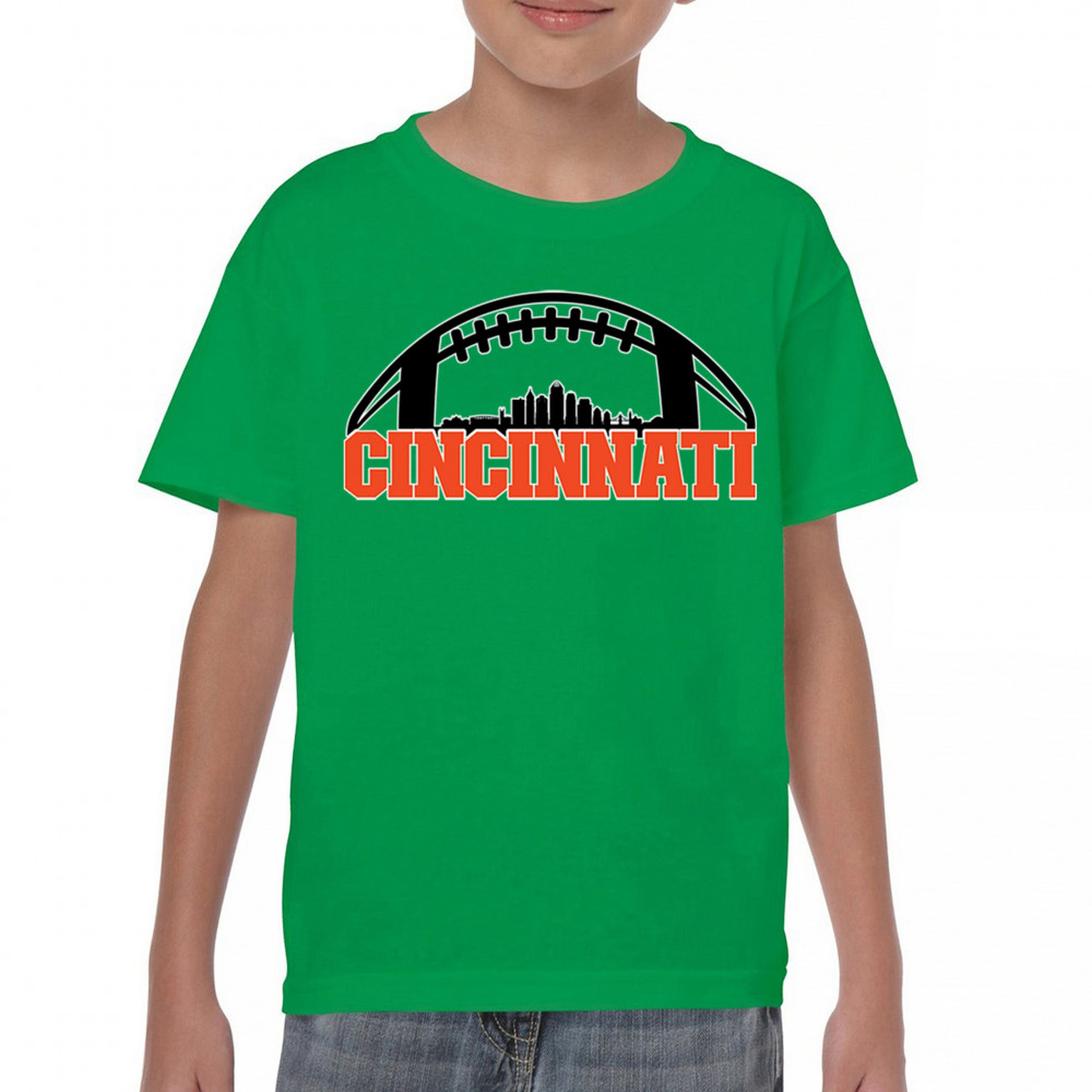 Celebrate Cincinnati and football with this bold skyline design under a football arch. Perfect for fans, tailgates, and game days!