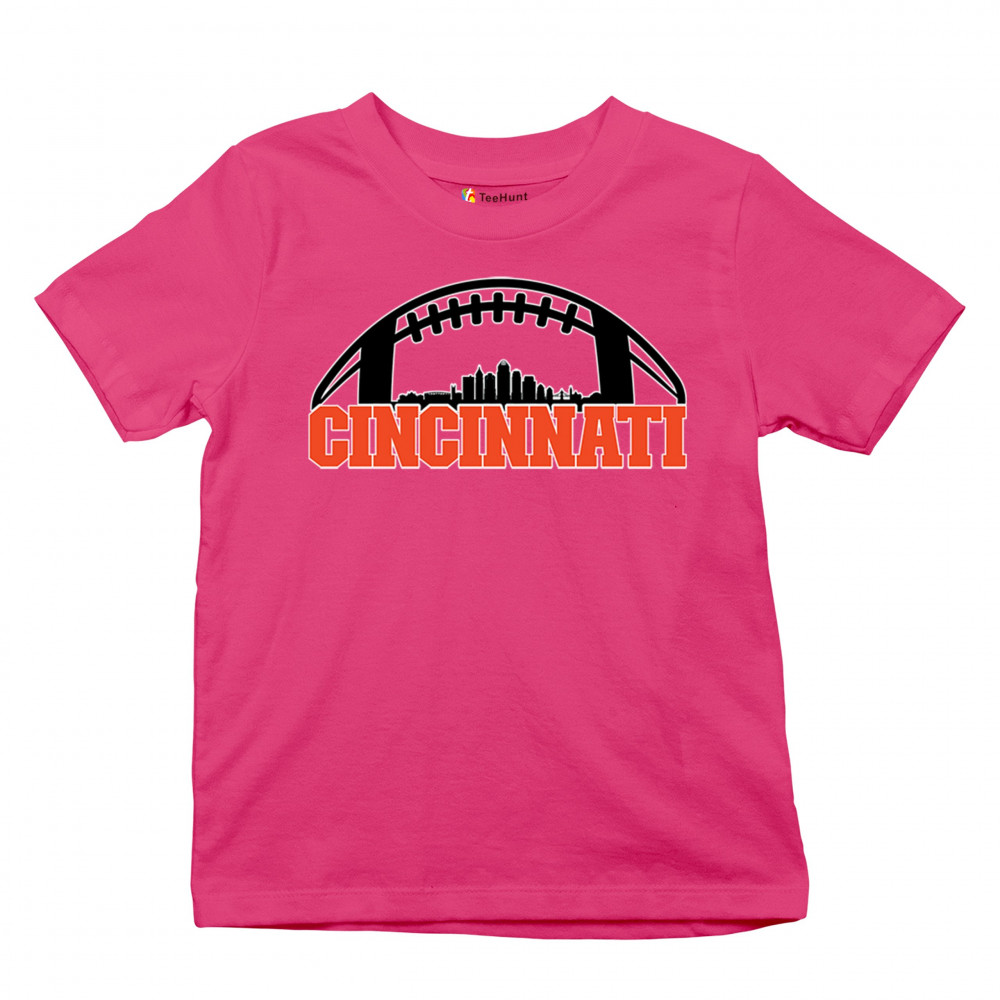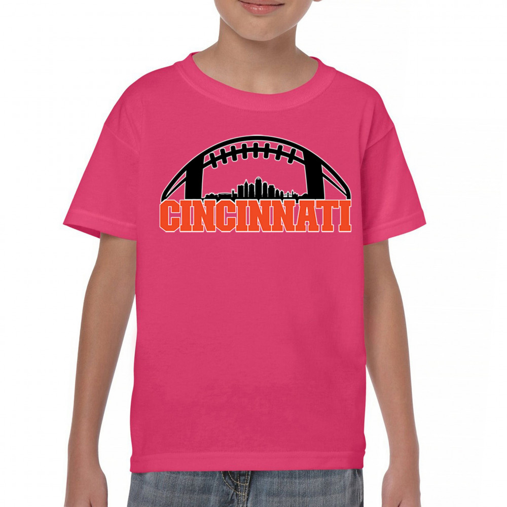 Celebrate Cincinnati and football with this bold skyline design under a football arch. Perfect for fans, tailgates, and game days!