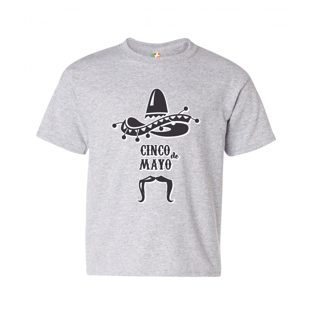 CINCO DE MAYO youth t-shirt funny party sombrero mexican culture fiesta kids gray