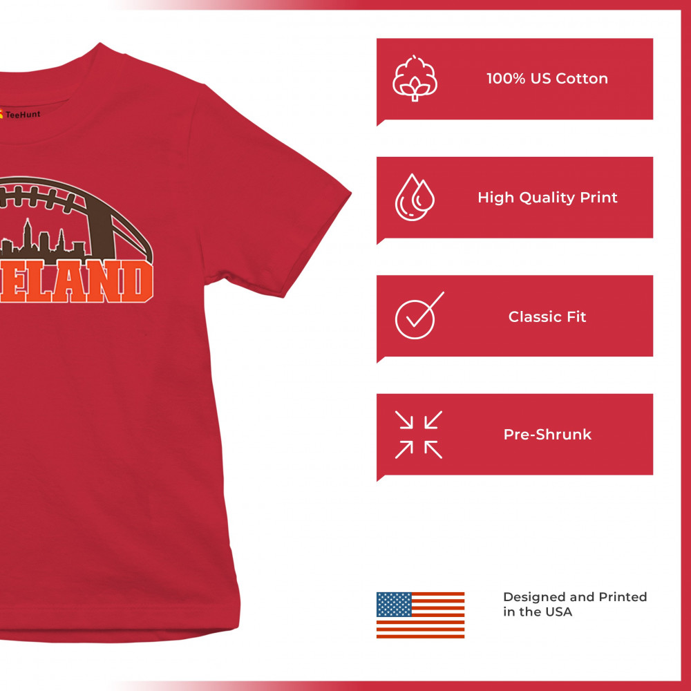Unleash your Cleveland spirit with this standout football-themed design, featuring the city's skyline in bold detail. Ideal for game day celebrations, tailgate parties, or casual wear, this design embodies the energy and pride of Cleveland's sports culture. Whether you're a lifelong fan or just love the city's vibe, this is a must-have for every Cleveland supporter.