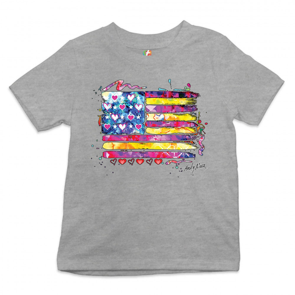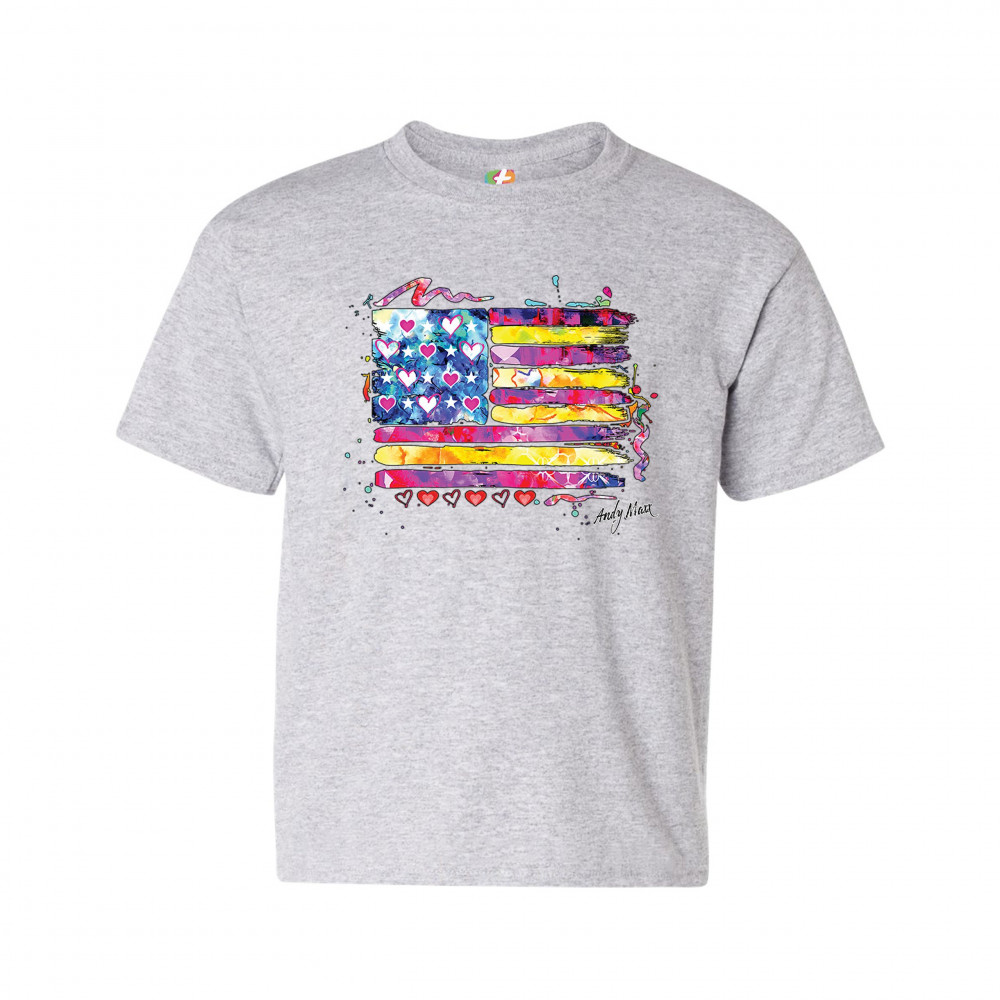 COLORFUL AMERICAN FLAG youth t-shirt patriotic 4th of july independence kids gray