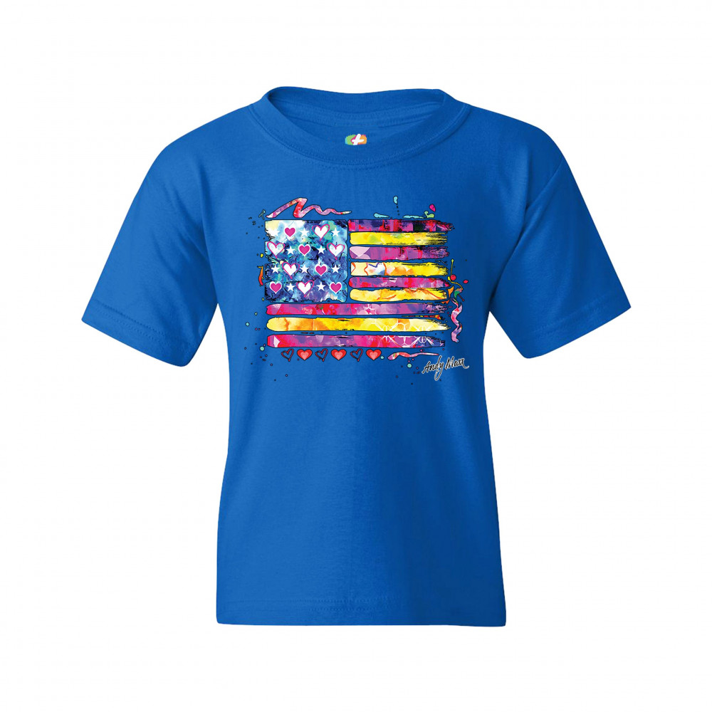 COLORFUL AMERICAN FLAG youth t-shirt patriotic 4th of july independence kids royal blue