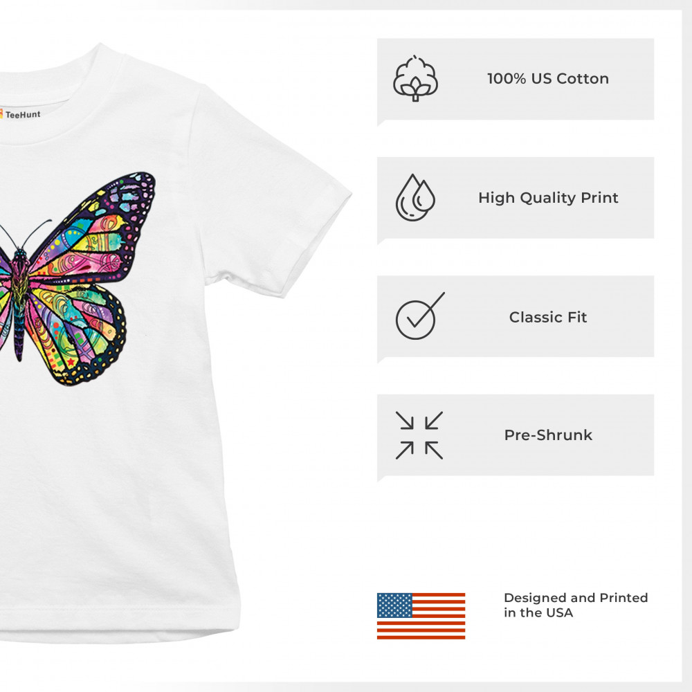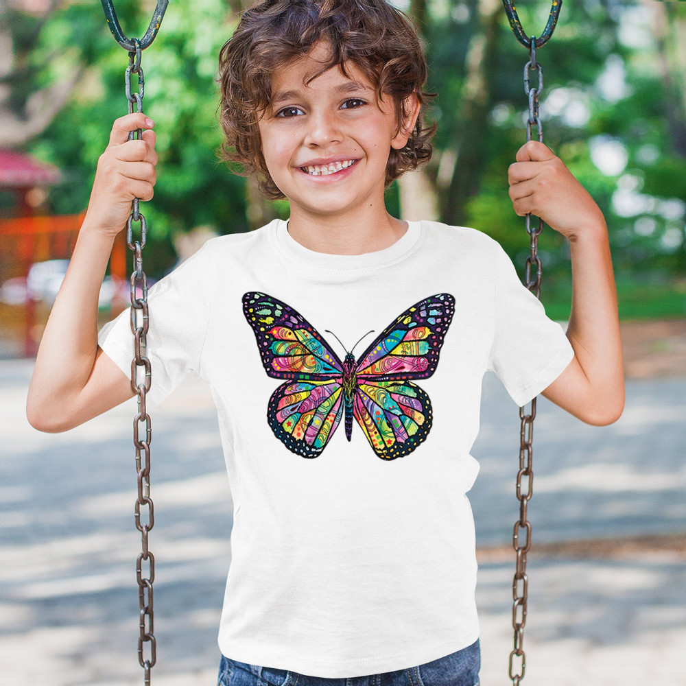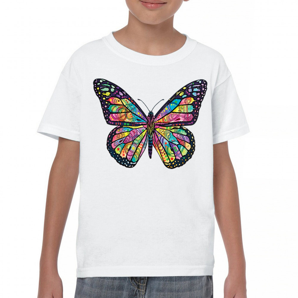 COLORFUL NEON BUTTERFLY youth t-shirt dean russo beautiful nature kids white