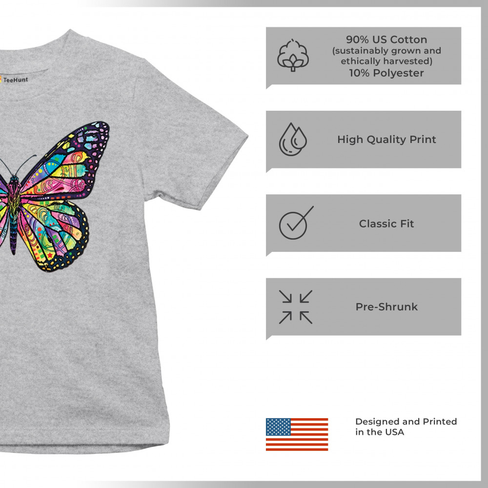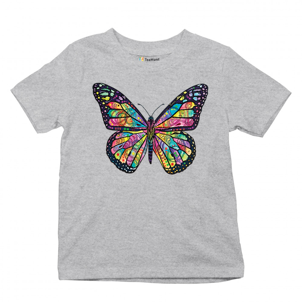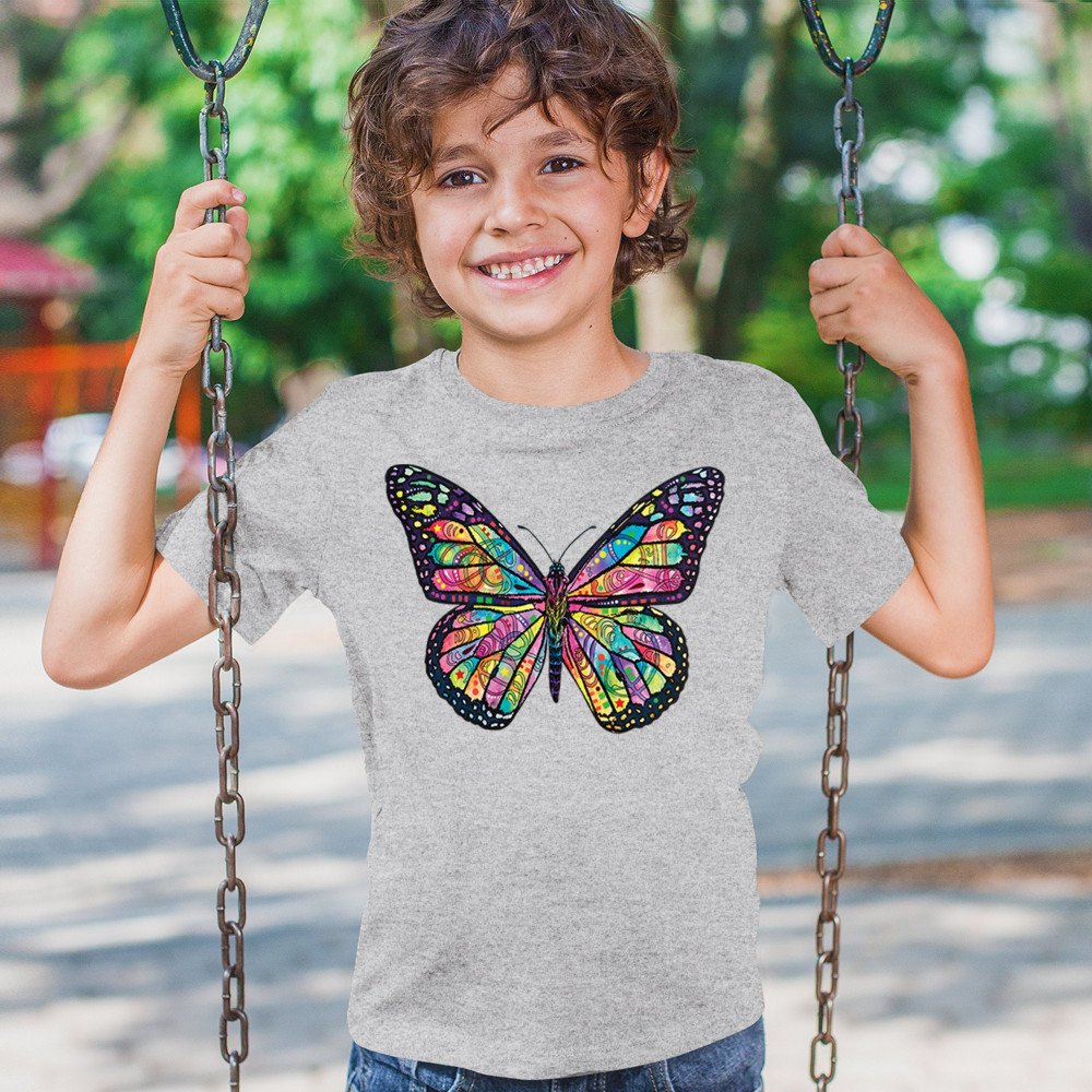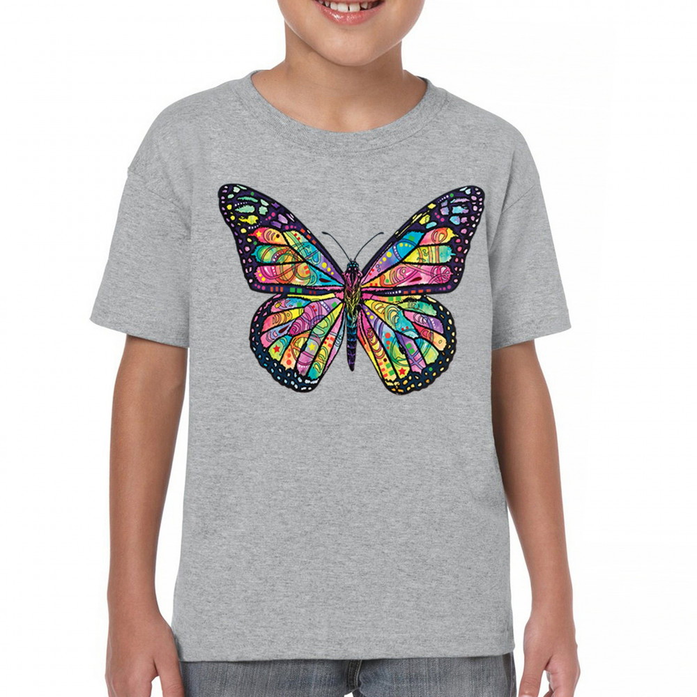 COLORFUL NEON BUTTERFLY youth t-shirt dean russo beautiful nature kids gray