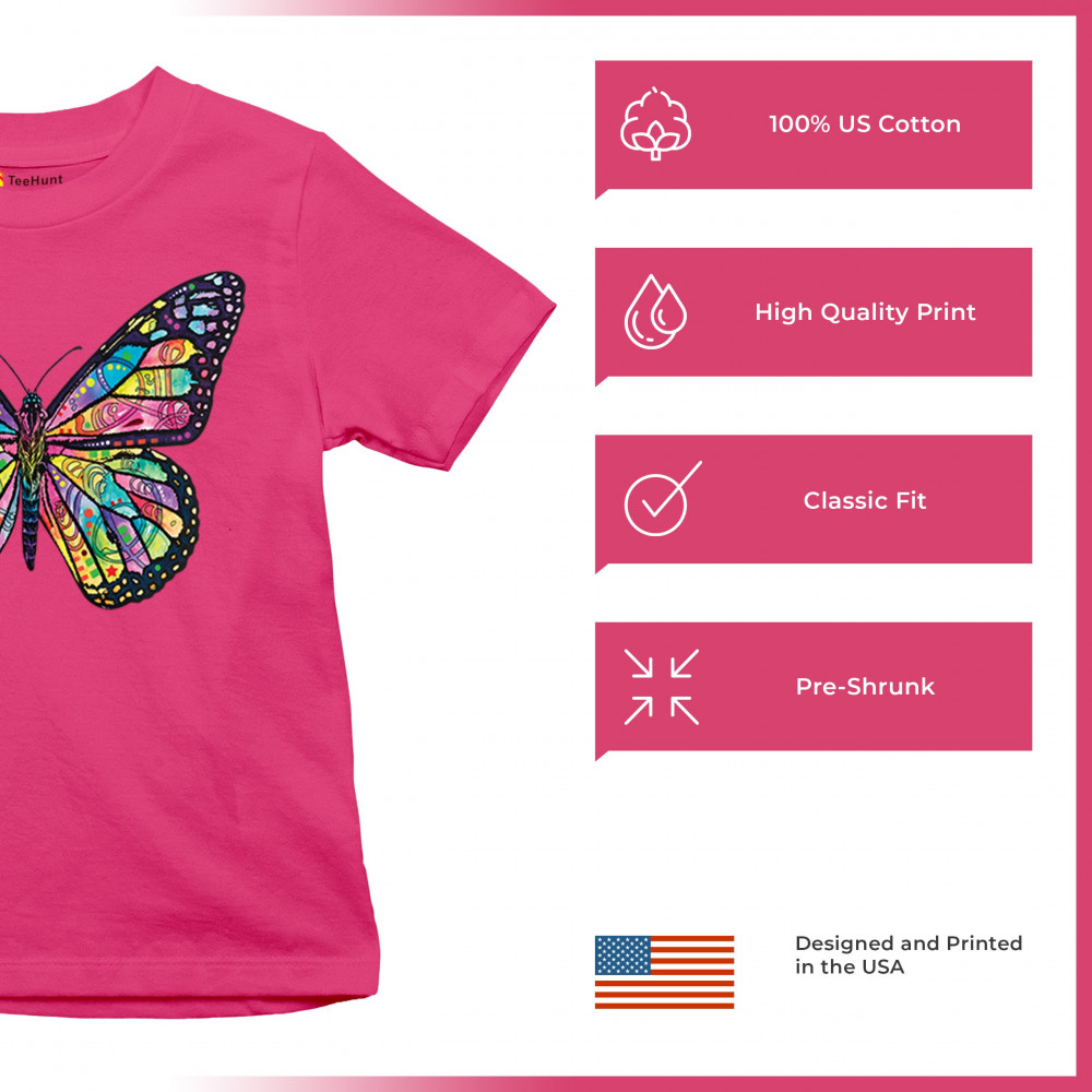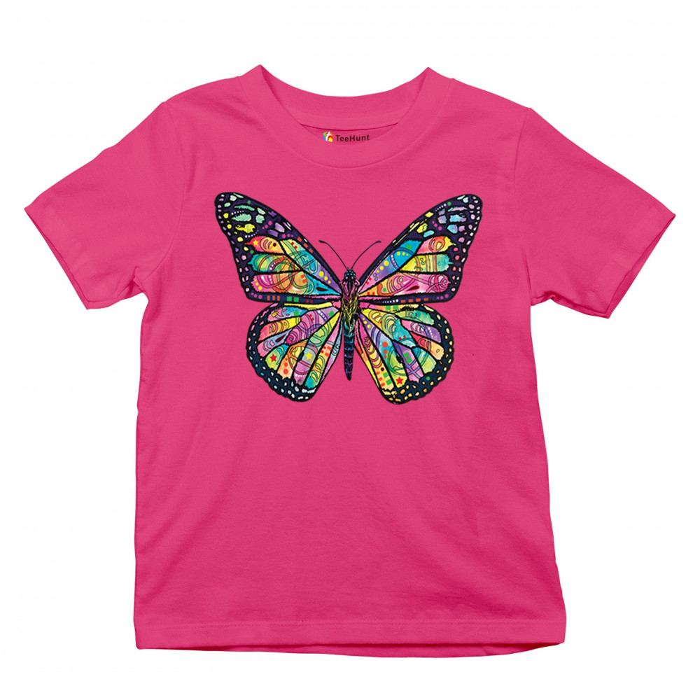 COLORFUL NEON BUTTERFLY youth t-shirt dean russo beautiful nature kids pink