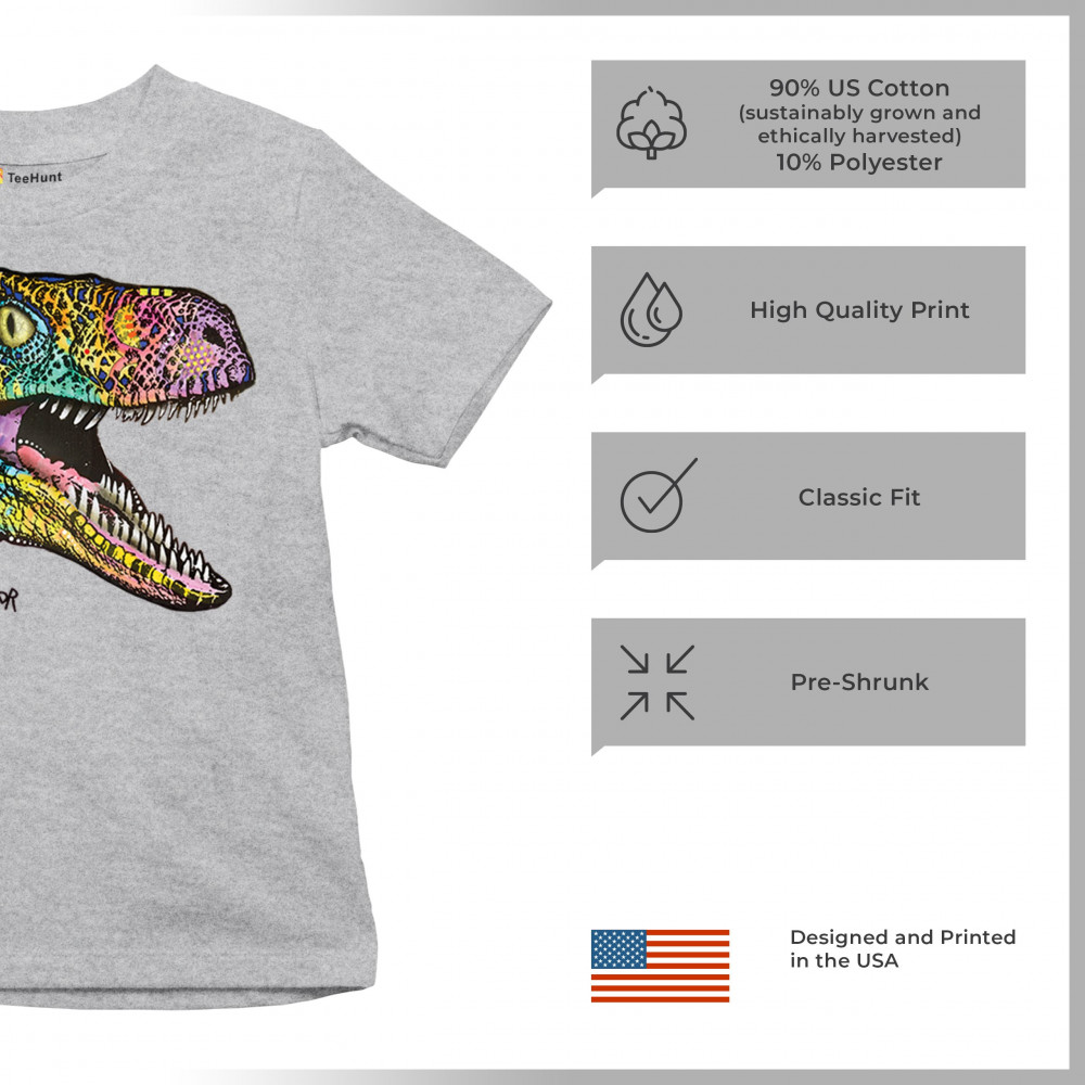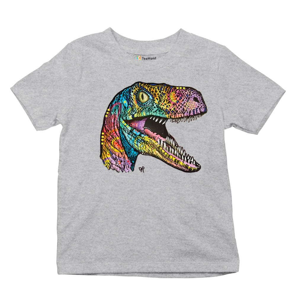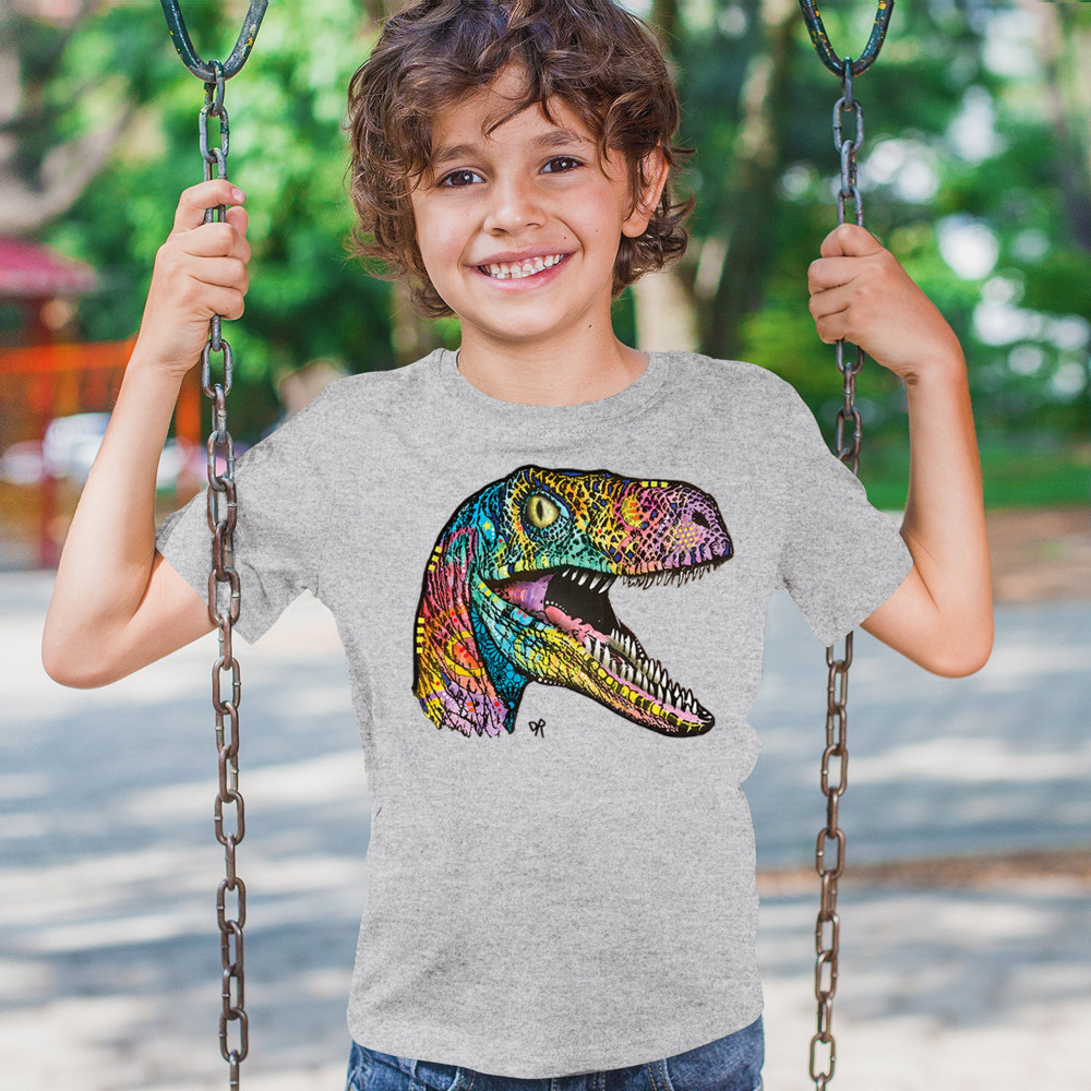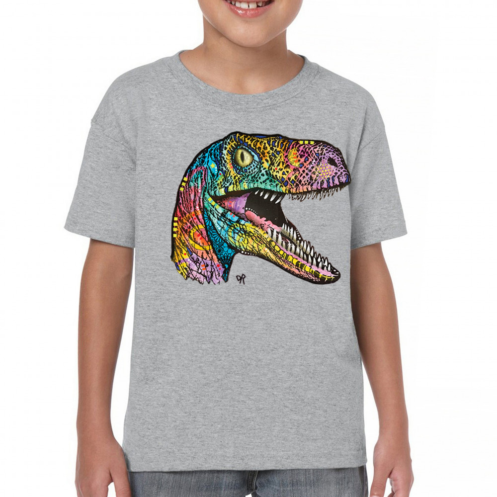 COLORFUL RAPTOR youth t-shirt dean russo neon jurassic dinosaur kids gray