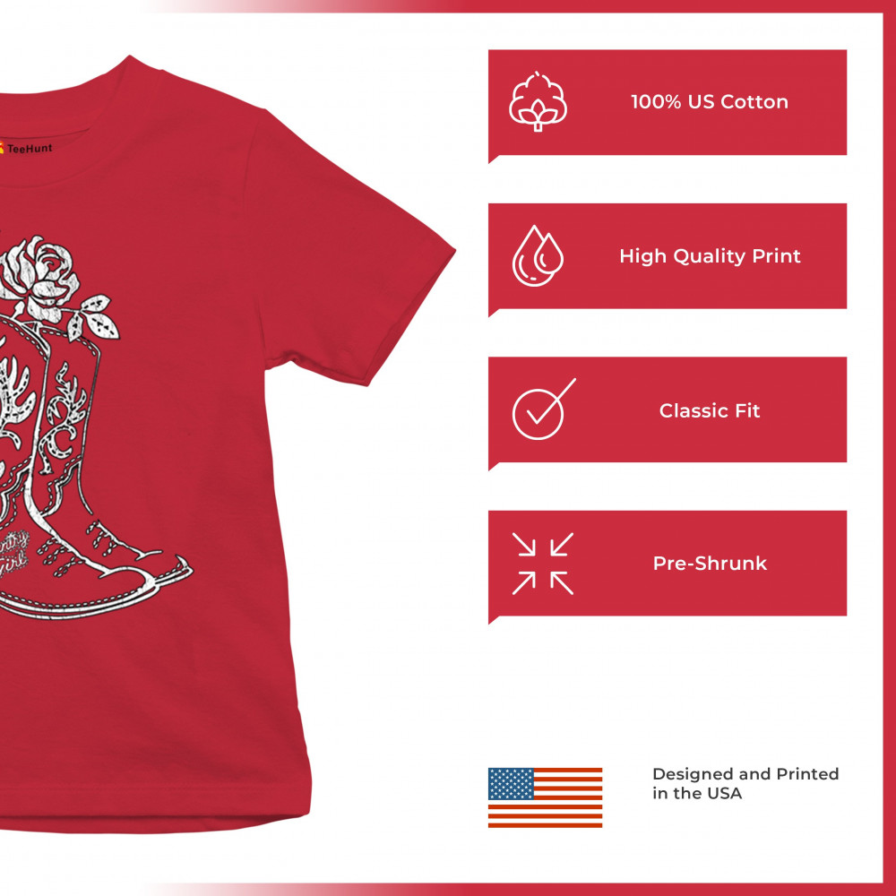 Embrace your southern roots with this rustic “Country Girl†design featuring embroidered western boots filled with roses. This floral cowboy boot graphic blends cowgirl pride, vintage charm, and sketch-style art—perfect for rodeos, concerts, barn dances, or sunny fairground strolls.