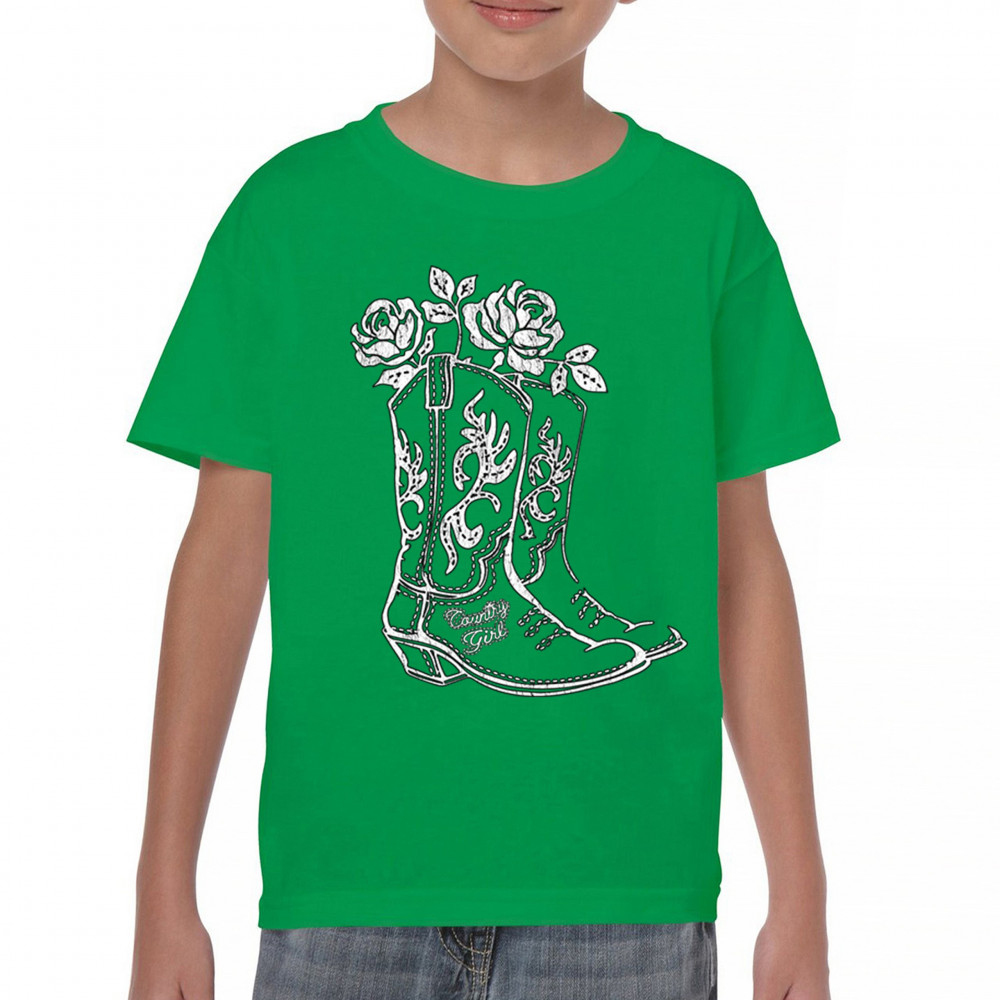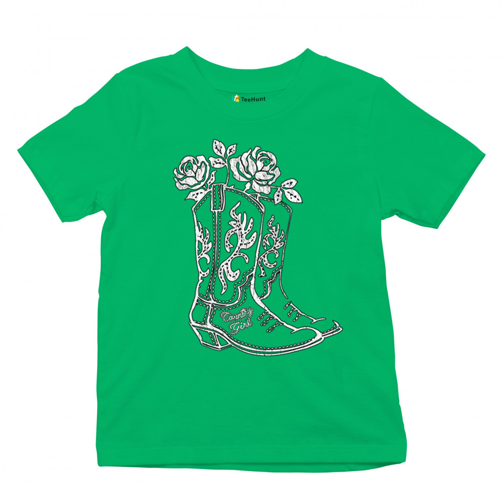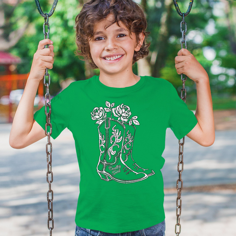 Rustic country girl design with boots and roses. Vintage western art perfect for cowgirls, rodeos, fairs, and outdoor country events.