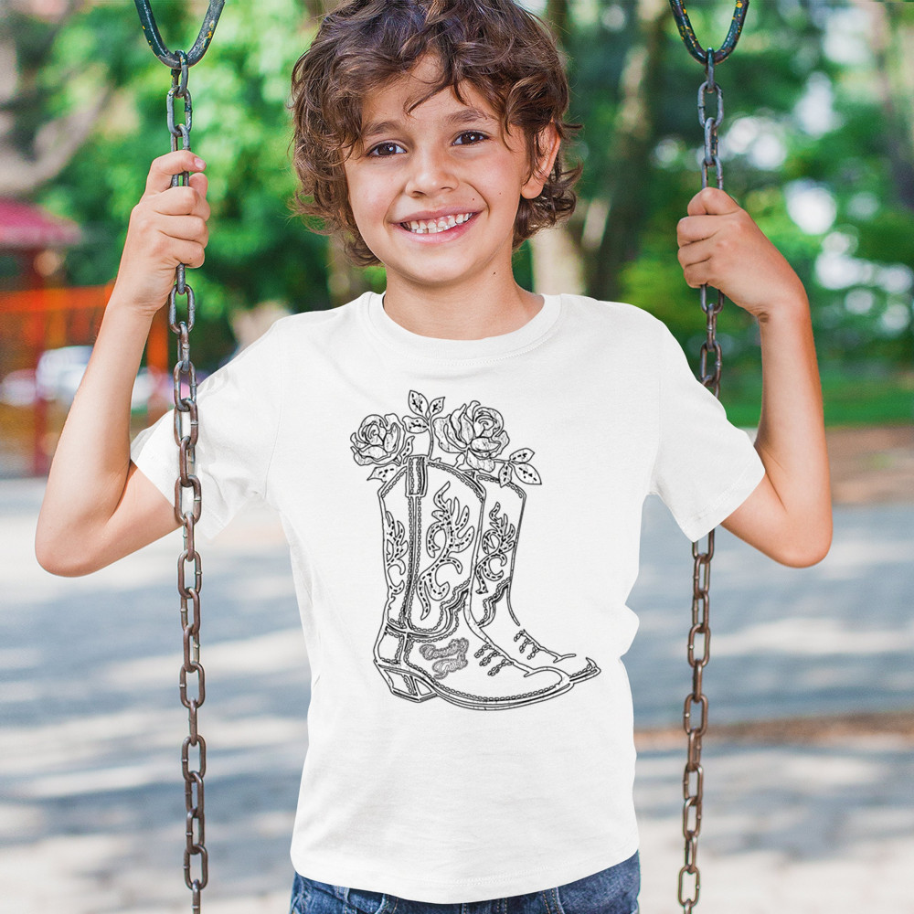 Embrace your southern roots with this rustic “Country Girl†design featuring embroidered western boots filled with roses. This floral cowboy boot graphic blends cowgirl pride, vintage charm, and sketch-style art—perfect for rodeos, concerts, barn dances, or sunny fairground strolls.