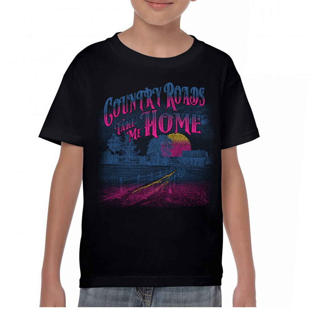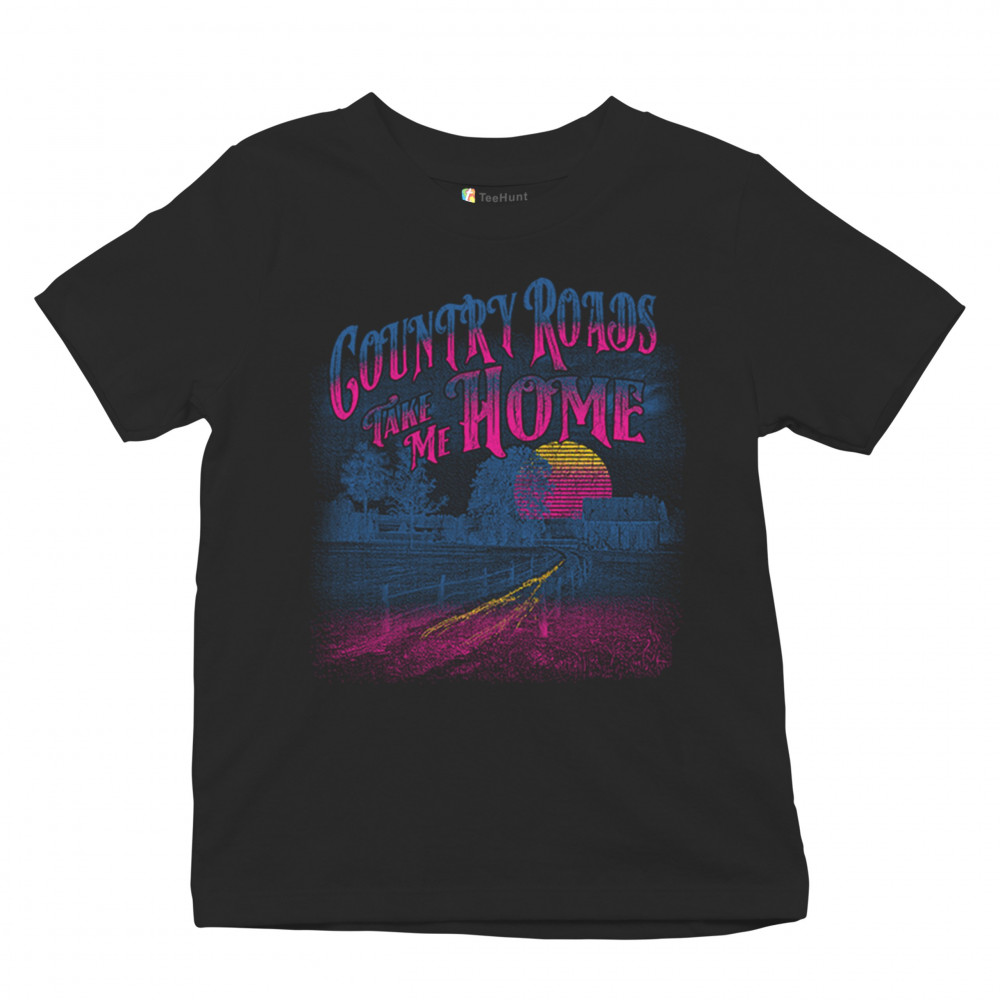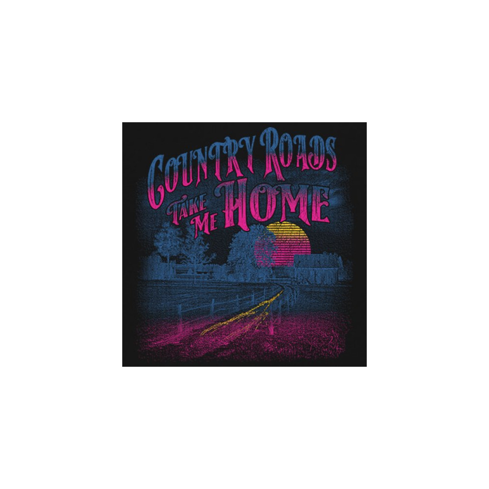 Retro sunset "Country Roads Take Me Home" design for road trip lovers, Americana fans, and country music souls. Bright, bold, and nostalgic.