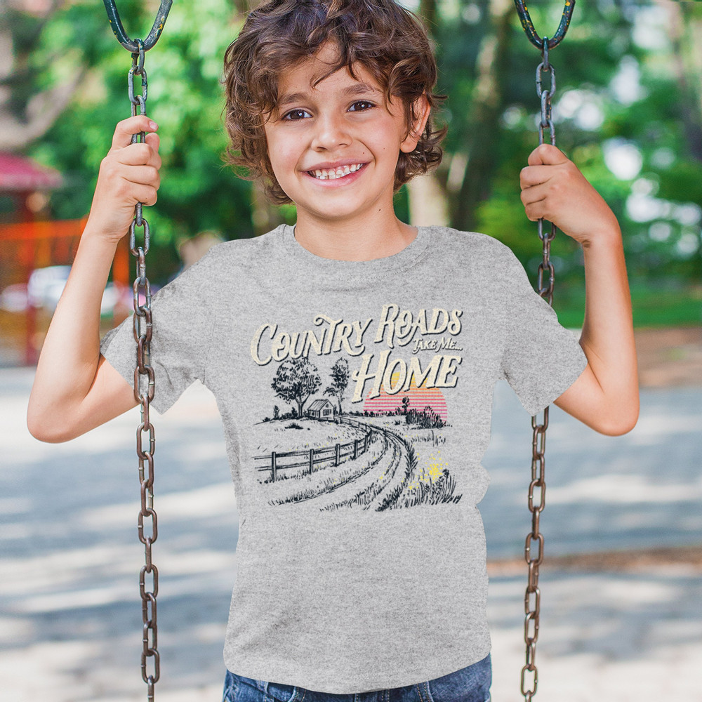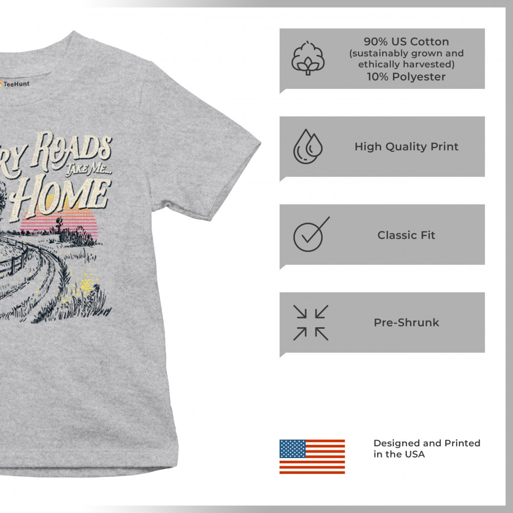 Celebrate your love for small town charm and scenic drives with this nostalgic country roads design. Featuring a bold "Take Me Home" message over a retro-styled sunset, it’s ideal for road trips, summer nights, fairs, concerts, and rural adventures. Let your wanderlust and country soul shine in every mile.