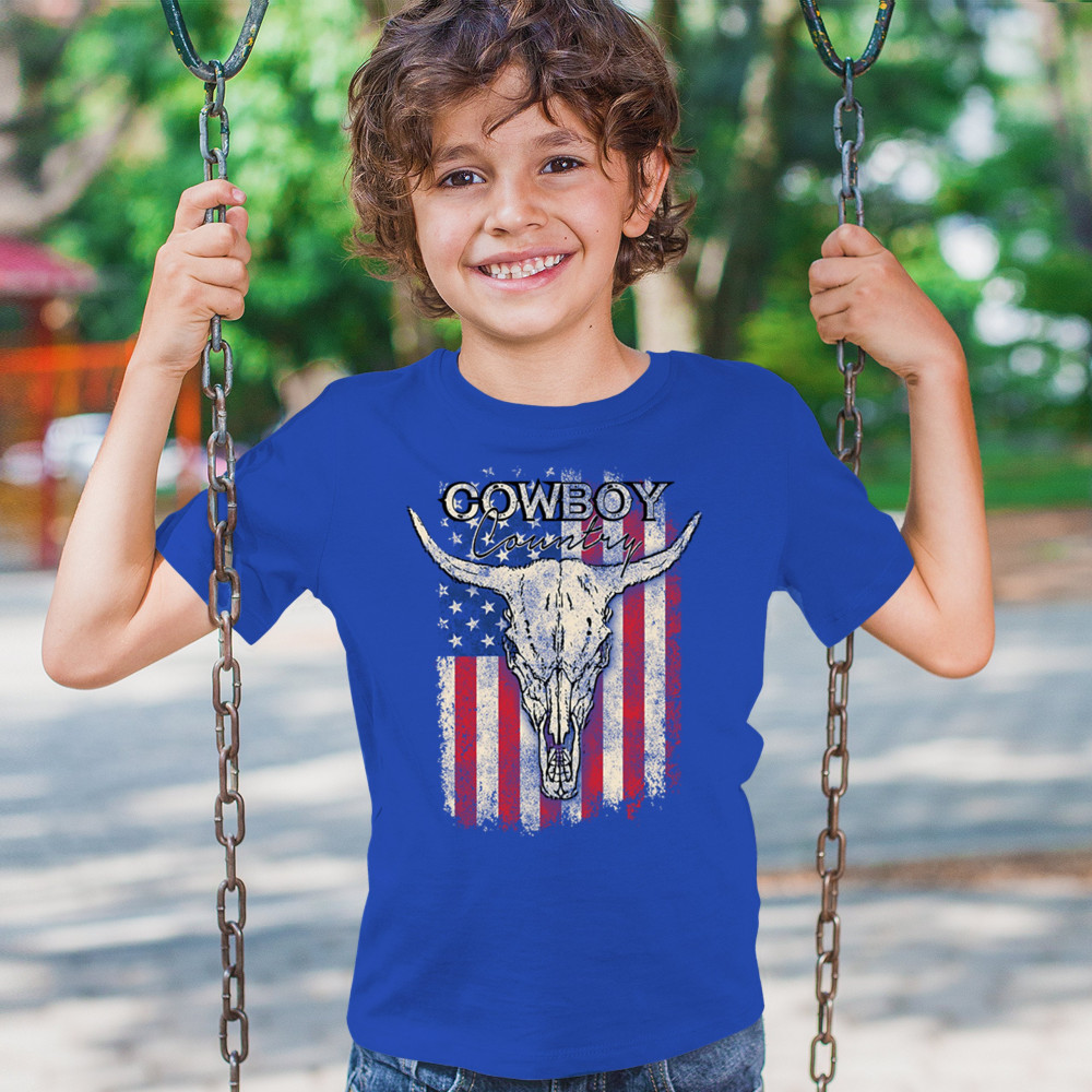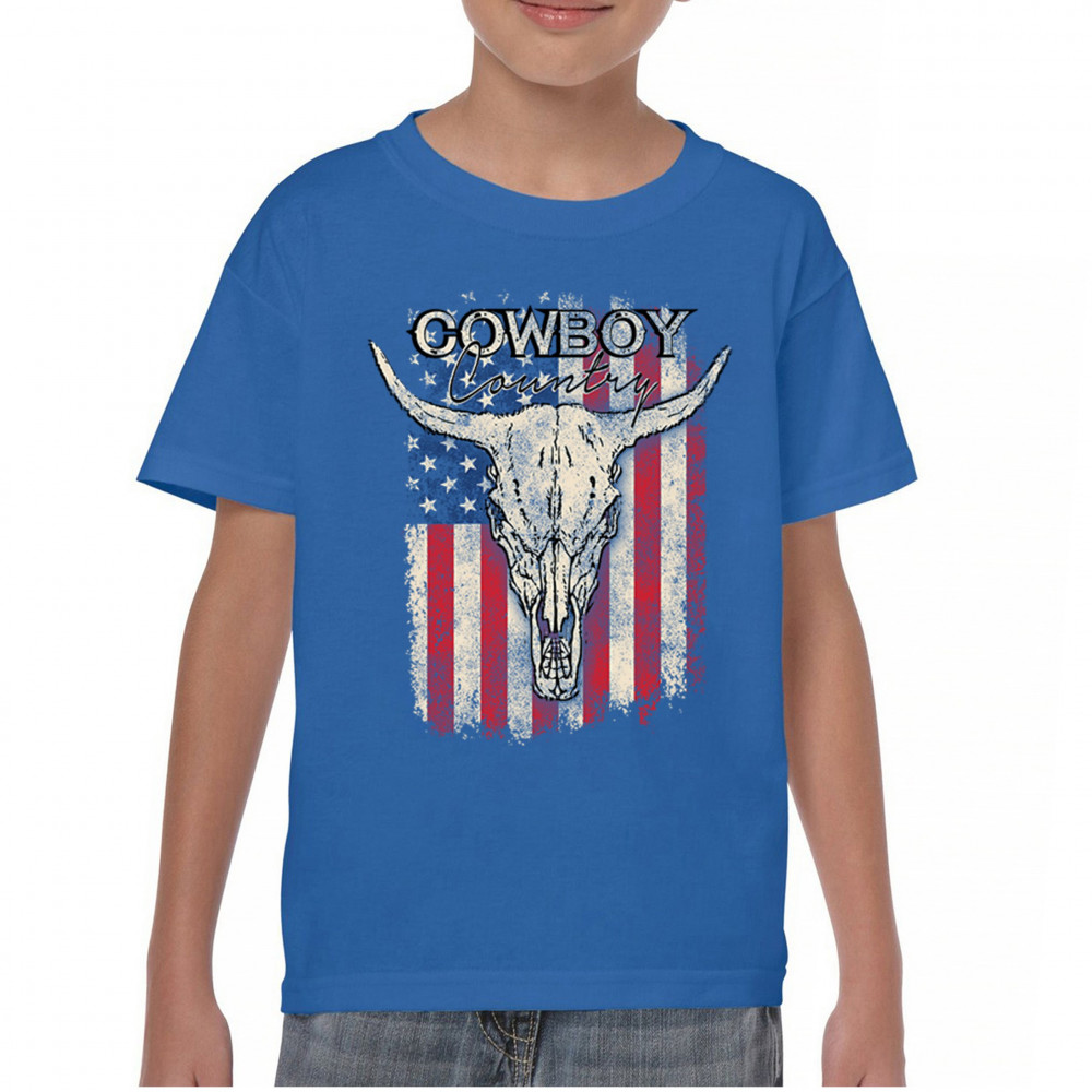 Celebrate western heritage with the Cowboy Country steer skull design, layered over a distressed American flag. This artwork embodies rustic Americana, rodeo style, and desert vibes. Perfect for cowboy décor lovers, ranch life enthusiasts, and those drawn to the wild west’s grit and prairie aesthetic. Wear your frontier spirit proudly.