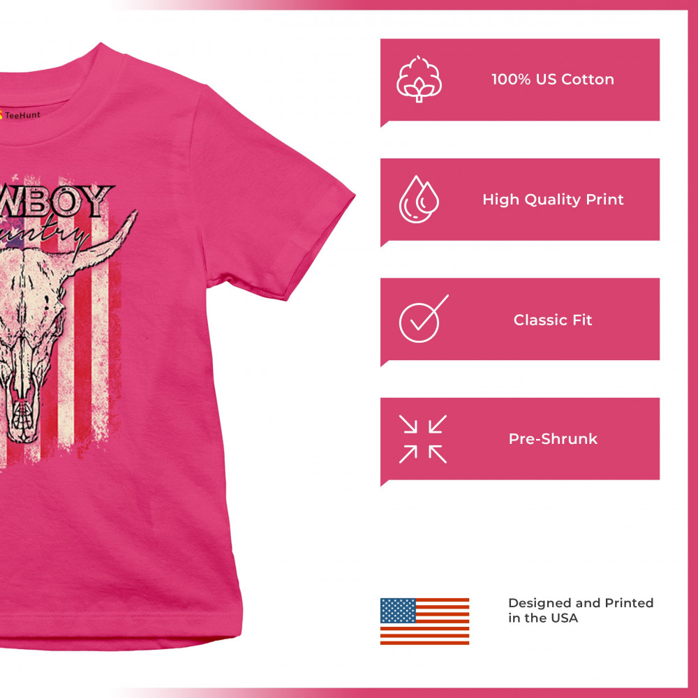 Cowboy Country steer skull design fuses rustic Americana, rodeo style, western heritage, and desert vibes for true frontier spirit.