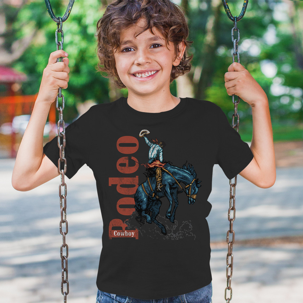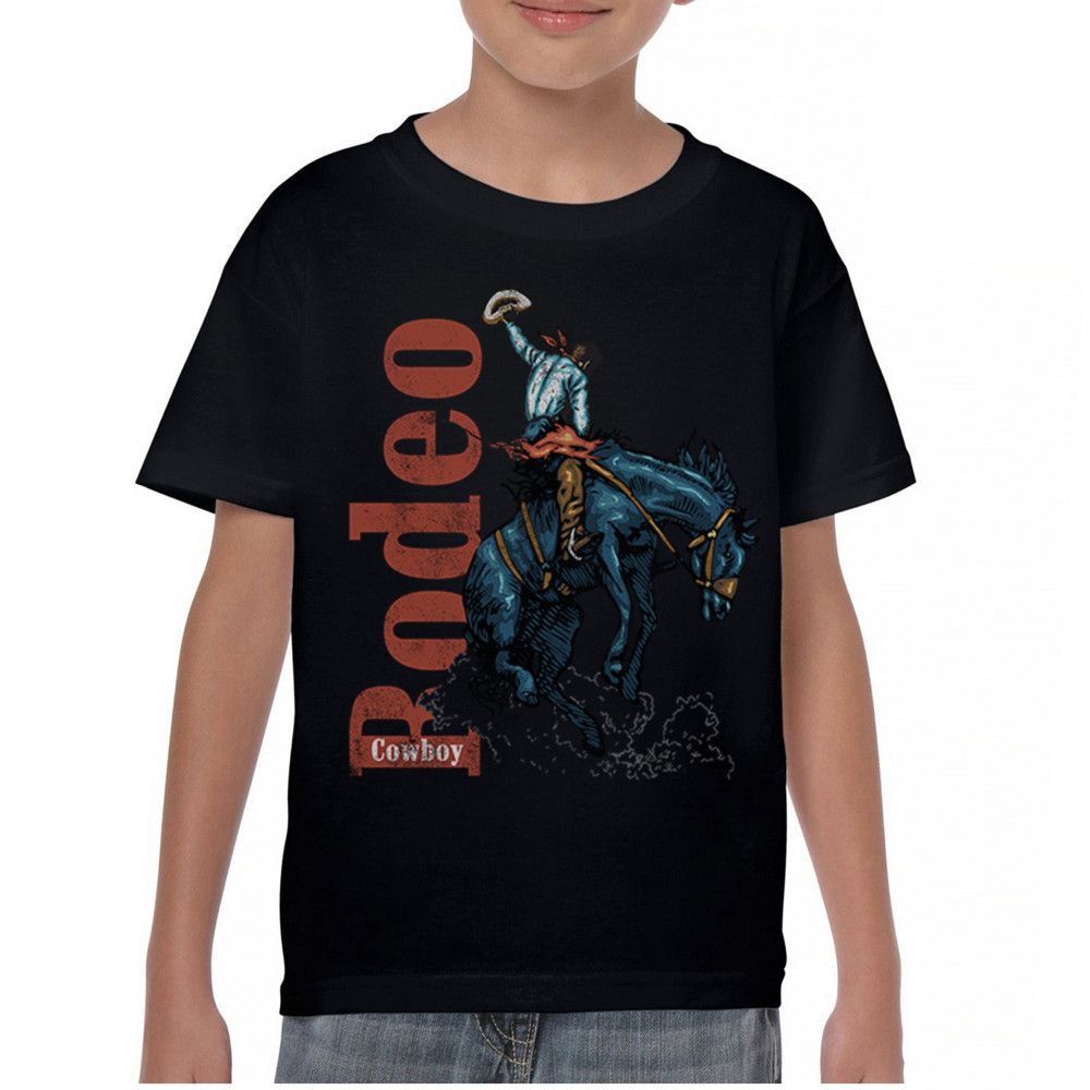 COWBOY RODEO youth t-shirt vintage horse rider american kids black
