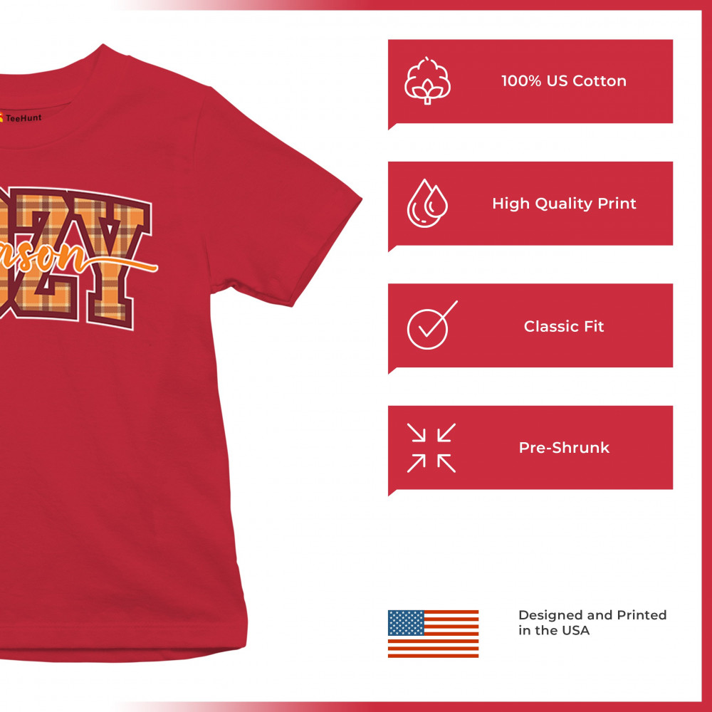 The "Cozy Season" plaid design is the perfect way to celebrate your love for all things autumn. With warm hues and a charming script, this print embodies the comfort and relaxation of the season. Whether you're spending chilly days at home or embracing the outdoor fall beauty, this design fits effortlessly into your wardrobe. It's an ideal gift for friends and family who appreciate the simple joys of autumn, including warm drinks, cozy sweaters, and the crispness of fall air.