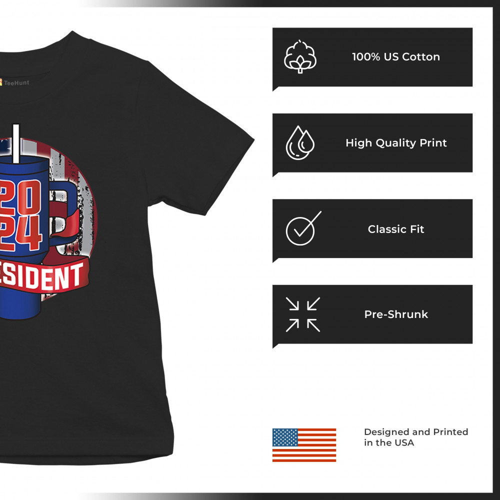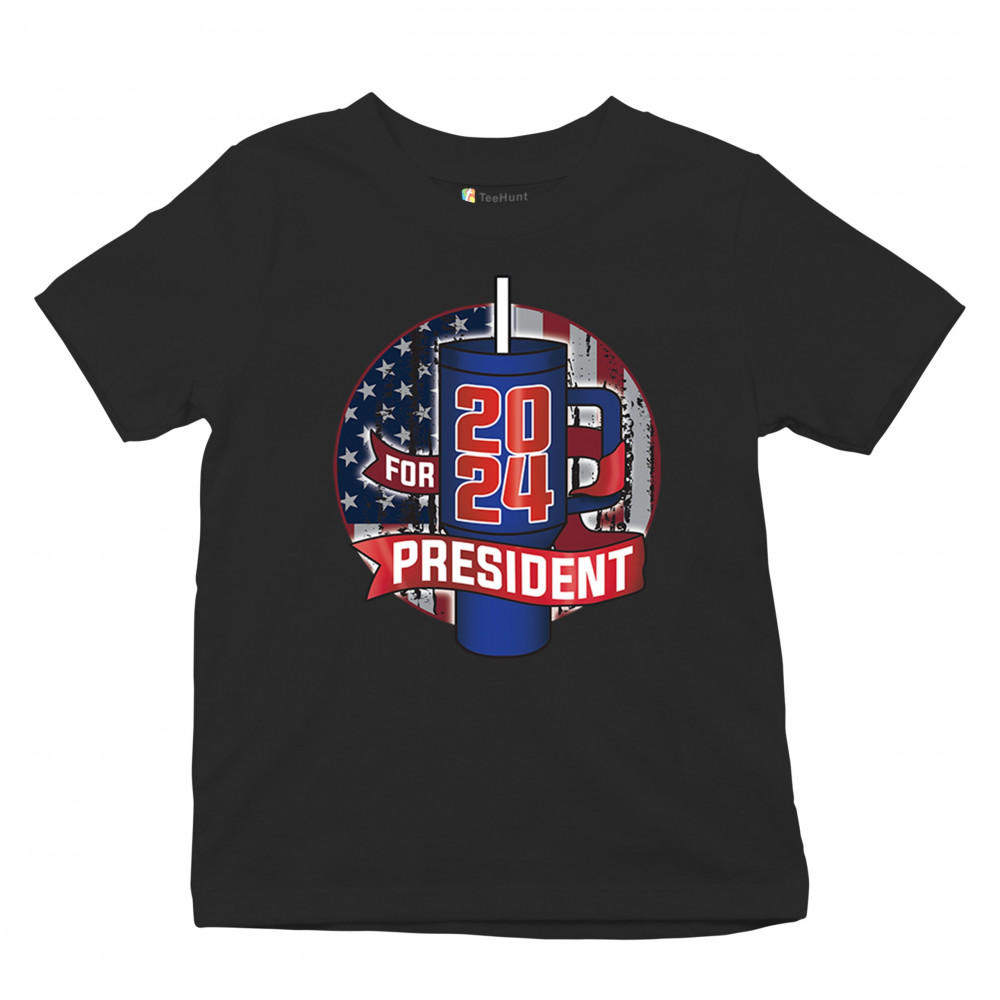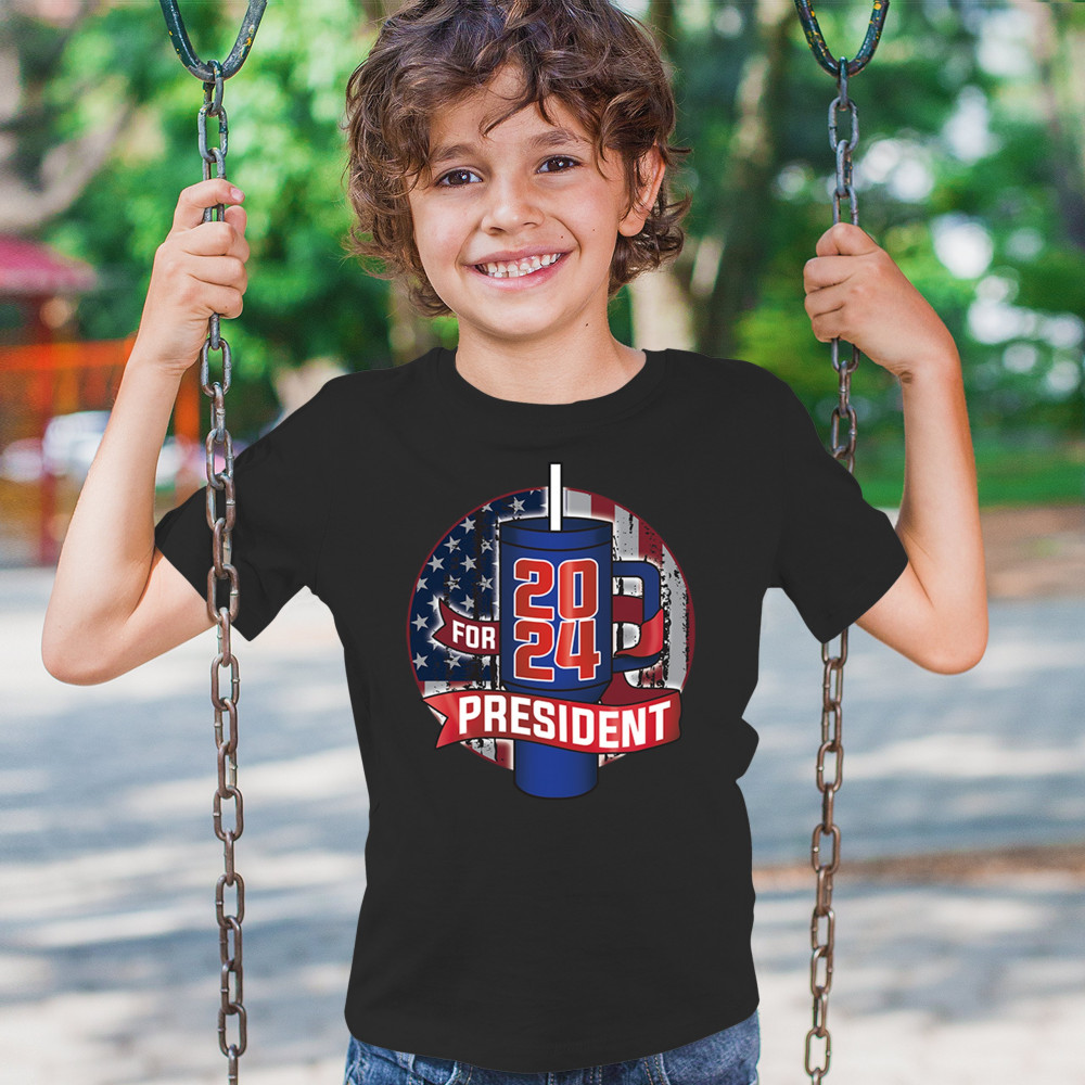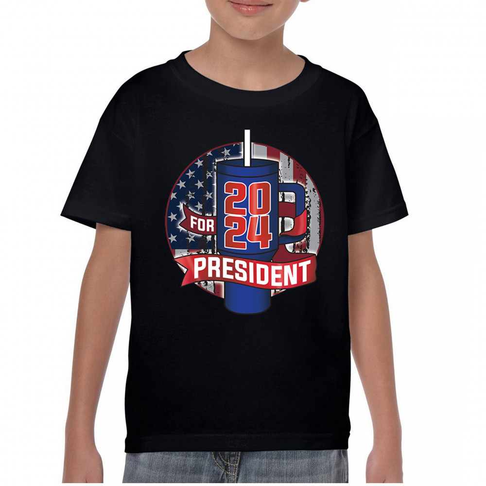 CUP FOR PRESIDENT 2024 youth t-shirt fun water bottle vote tumbler parody kids black