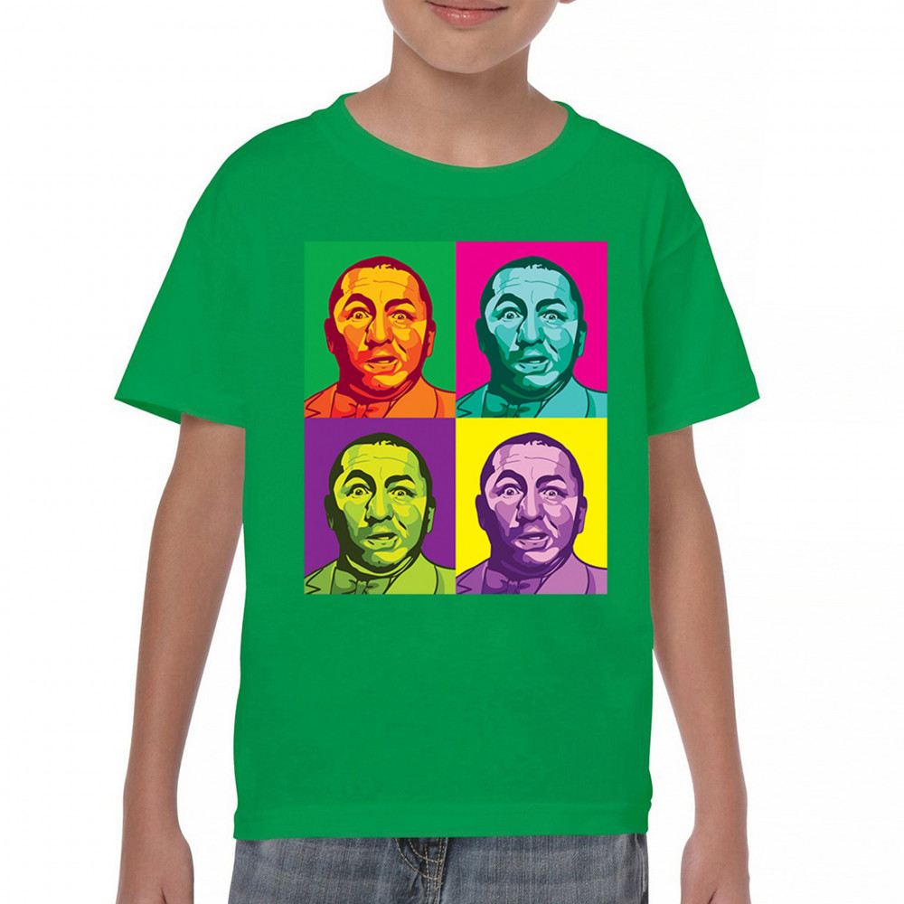 Introducing our dazzling pop art collection, headlined by the inimitable Curly of the Three Stooges! With a quartet of vivid hues, this T-shirt is a contemporary twist on classic humor. It's a standout piece for any fan's collection, capturing the timeless expression of Curly in a modern art style that's sure to turn heads and spark smiles.