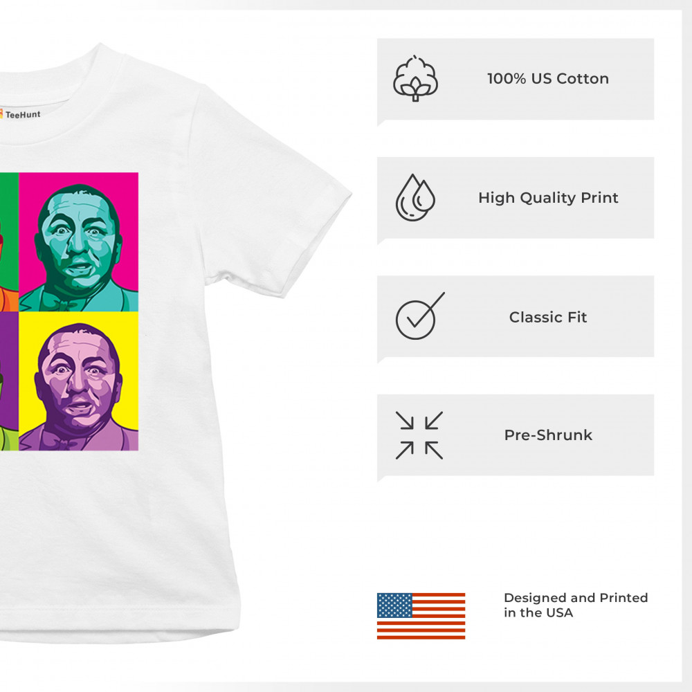 Experience Curly in full color with our pop art Three Stooges T-shirt—a fresh take on a classic that's as unique and spirited as the man himself!
