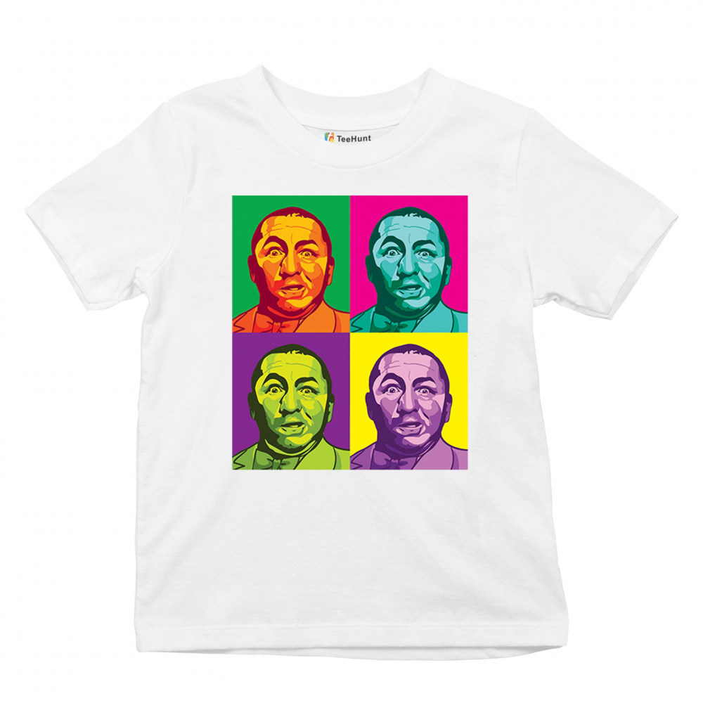 Introducing our dazzling pop art collection, headlined by the inimitable Curly of the Three Stooges! With a quartet of vivid hues, this T-shirt is a contemporary twist on classic humor. It's a standout piece for any fan's collection, capturing the timeless expression of Curly in a modern art style that's sure to turn heads and spark smiles.