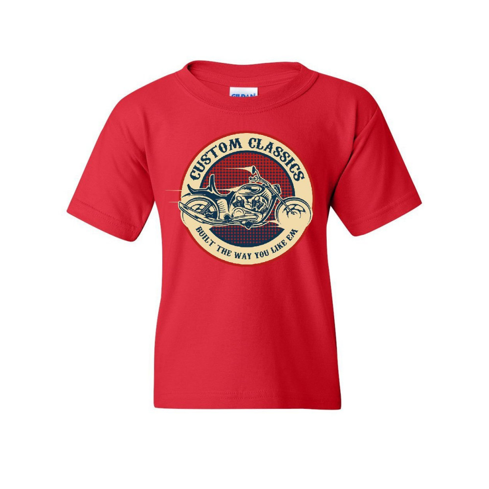 CUSTOM CLASSICS youth t-shirt chopper bobber biker rte 66 live to ride kids tee red