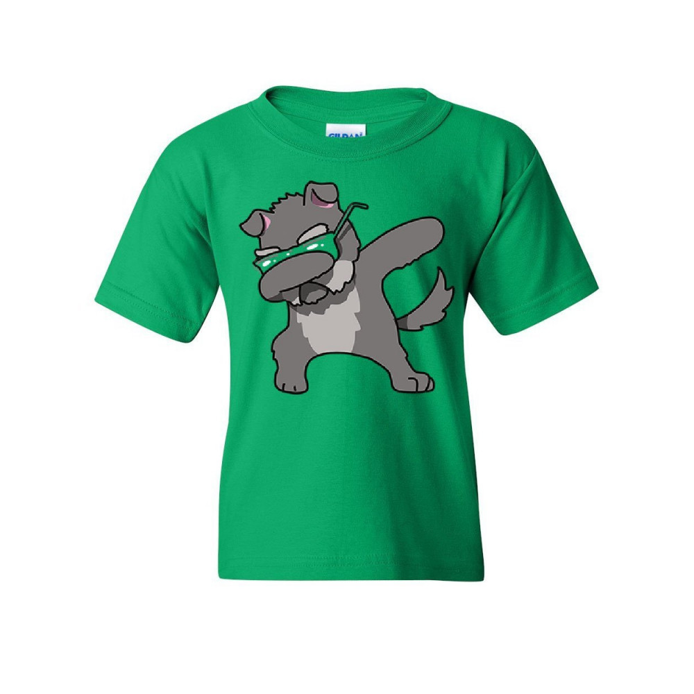 DABBING DOG in glasses youth t-shirt doggie dab pet lovers pup puppy kids tee green