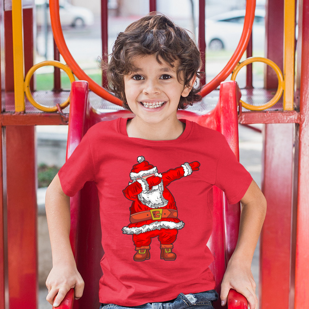 DABBING SANTA CLAUS youth t-shirt merry christmas funny dab dance x-mas kids red