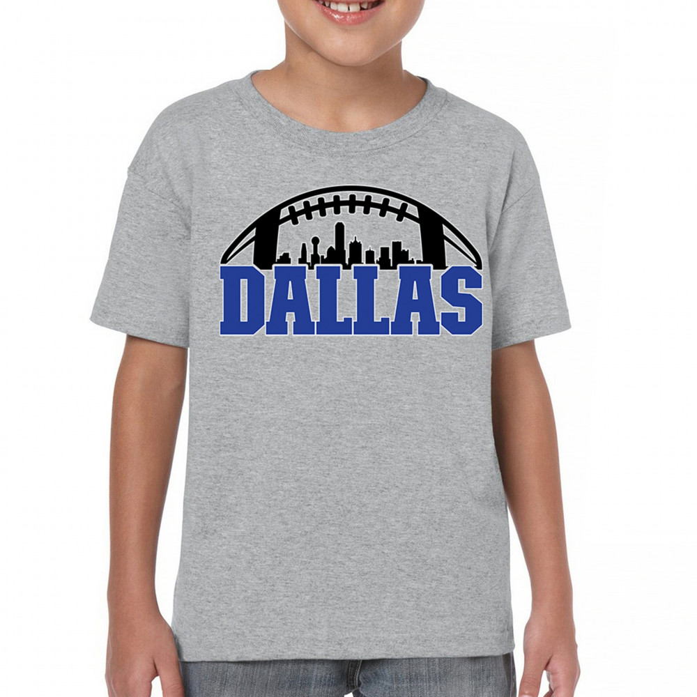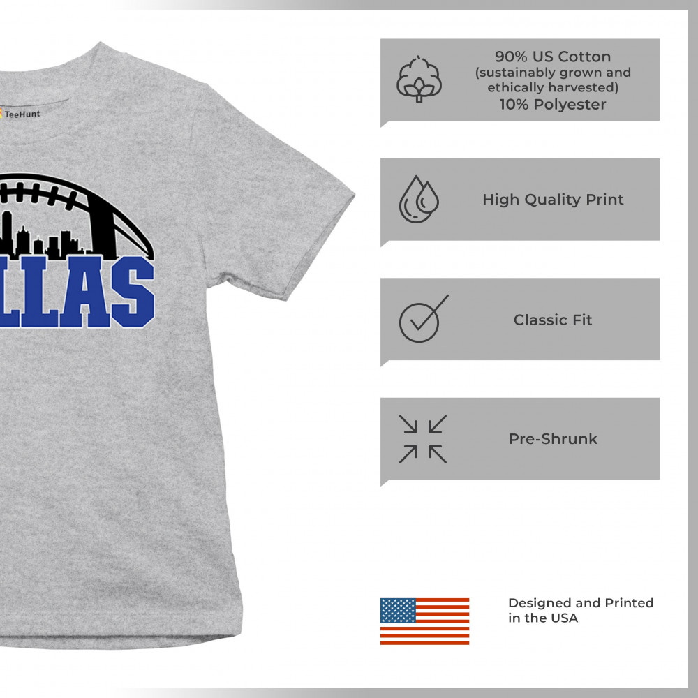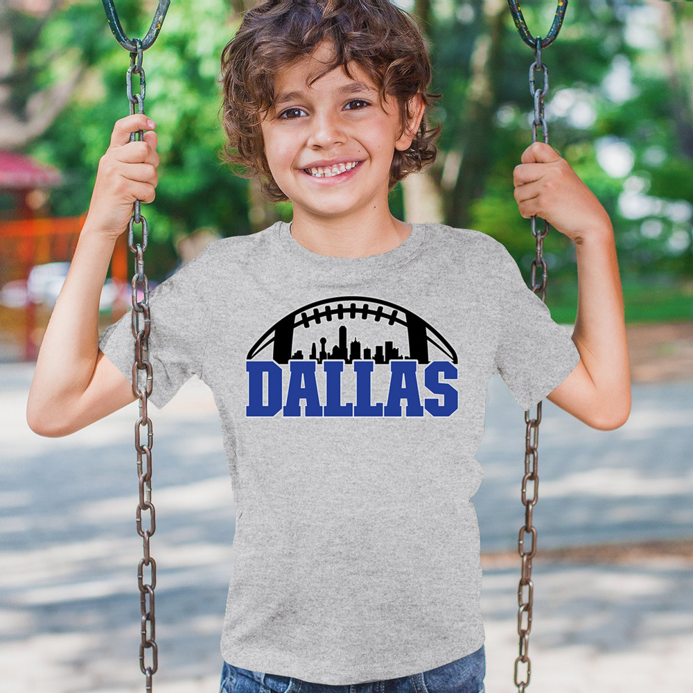 Show off your Dallas pride with a bold football-themed design featuring the city's skyline. Perfect for game days, tailgates, and passionate fans.