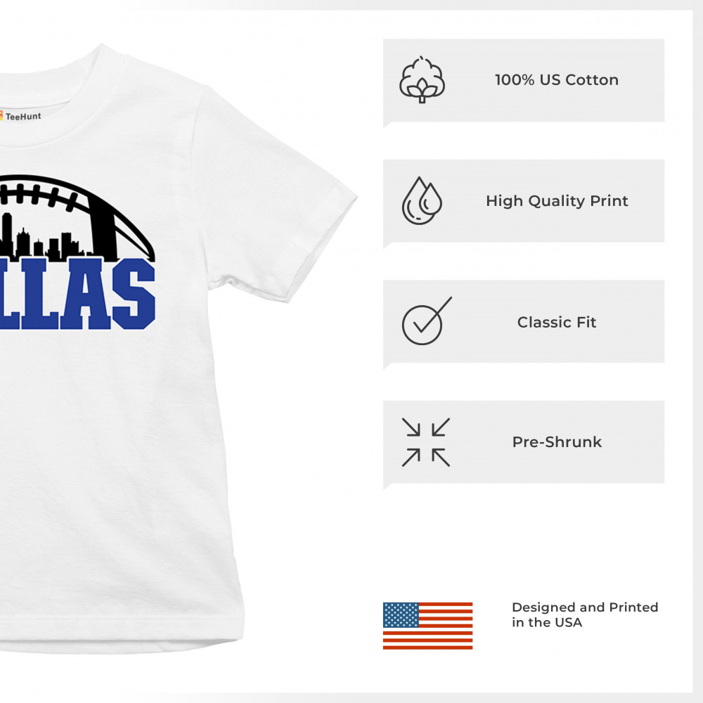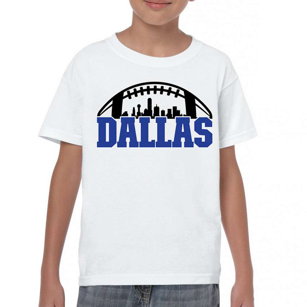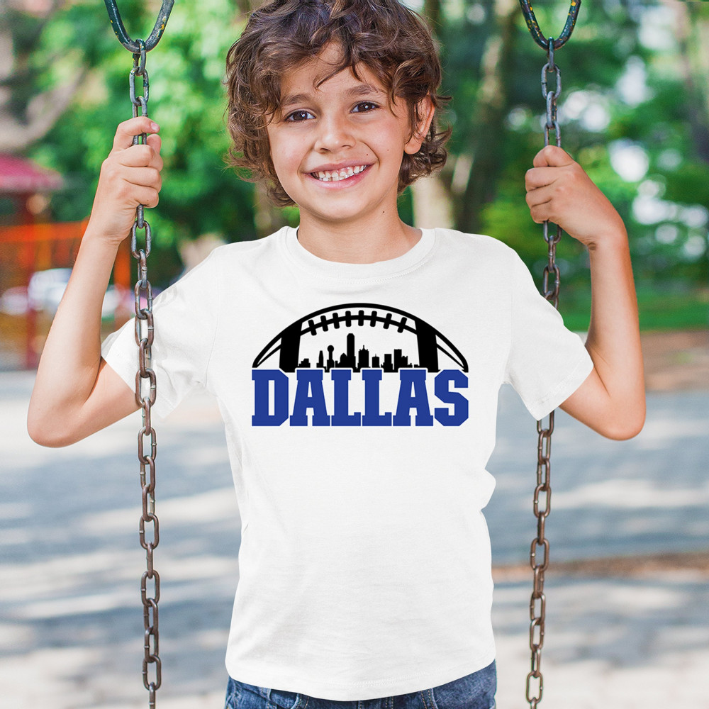 Show off your Dallas pride with a bold football-themed design featuring the city's skyline. Perfect for game days, tailgates, and passionate fans.
