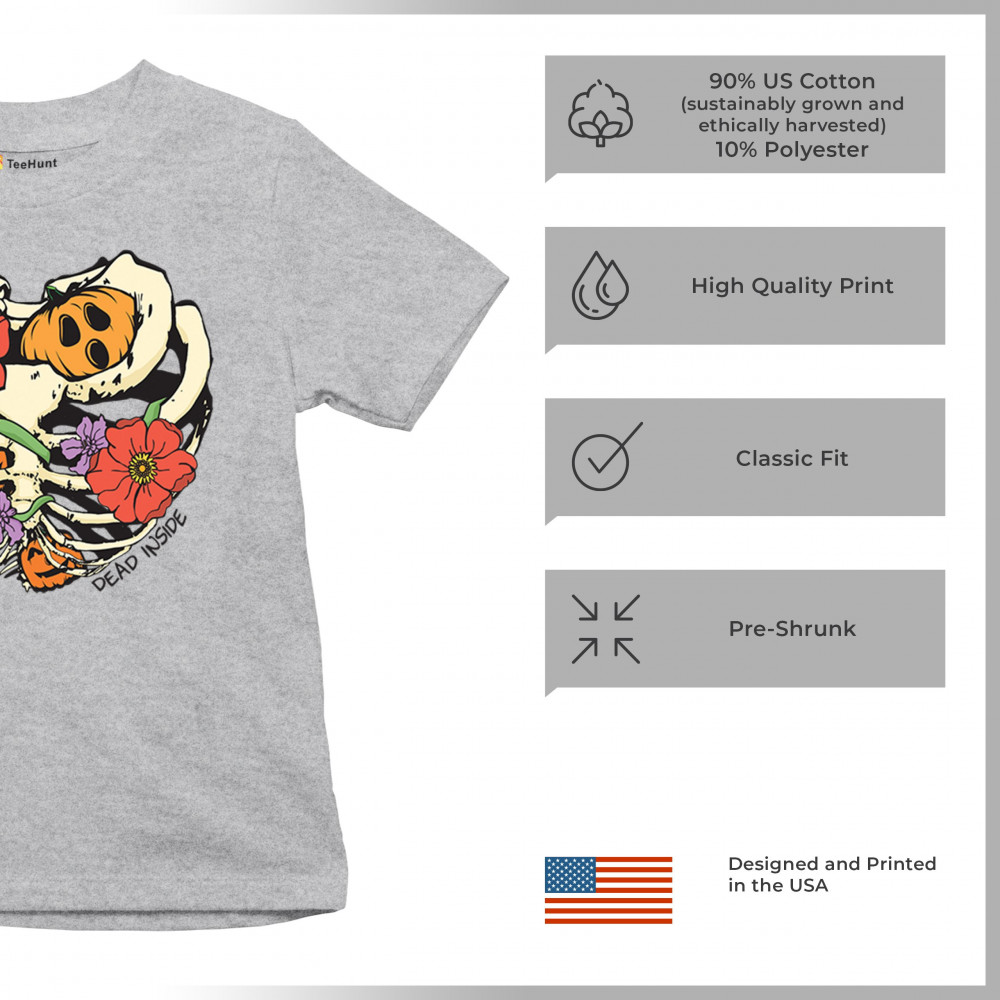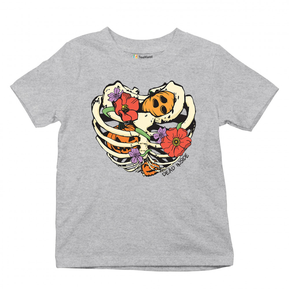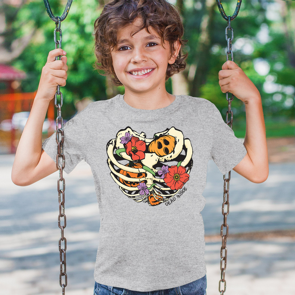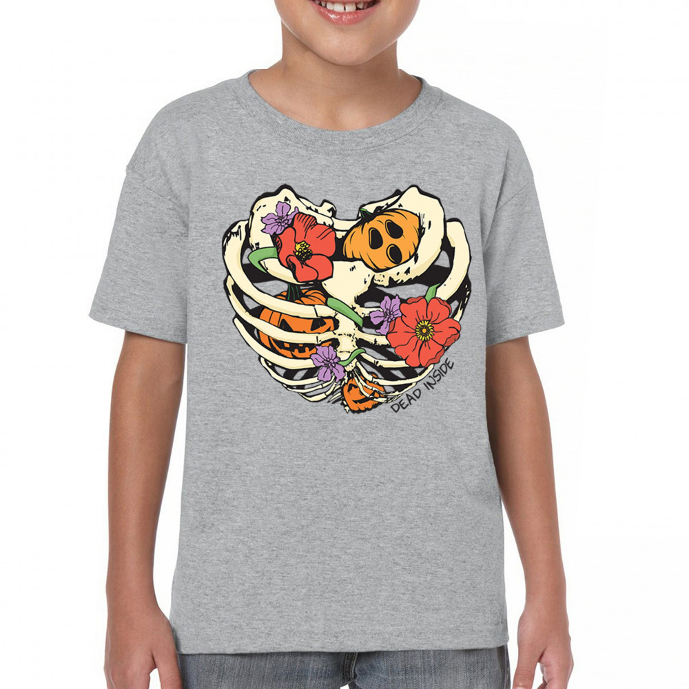 Celebrate Halloween with a quirky and cute design featuring a skeleton ribcage filled with pumpkins and flowers. Perfect for spooky season lovers!