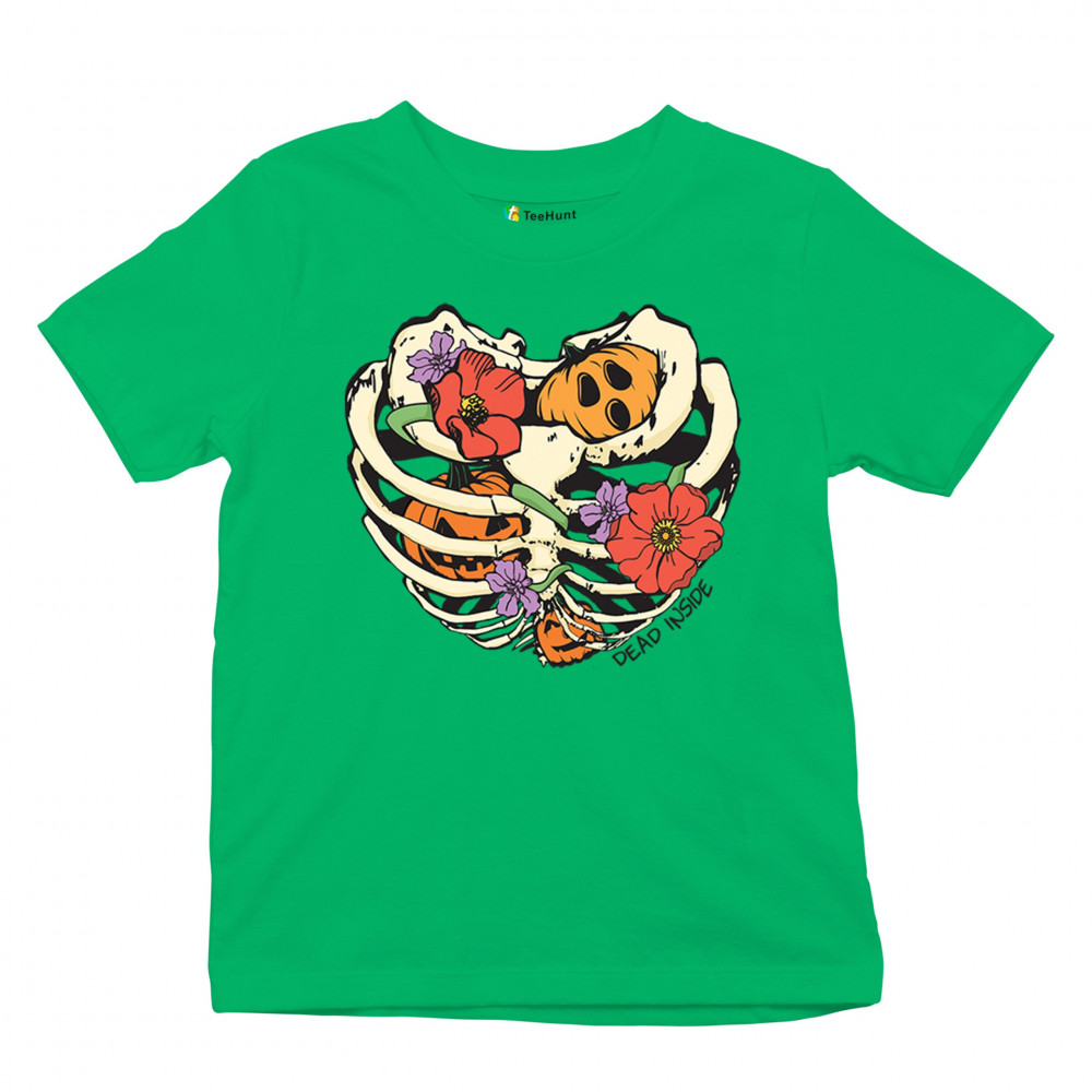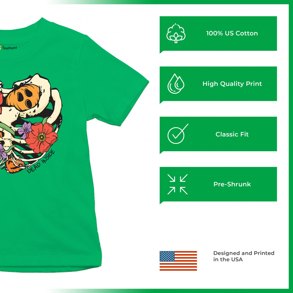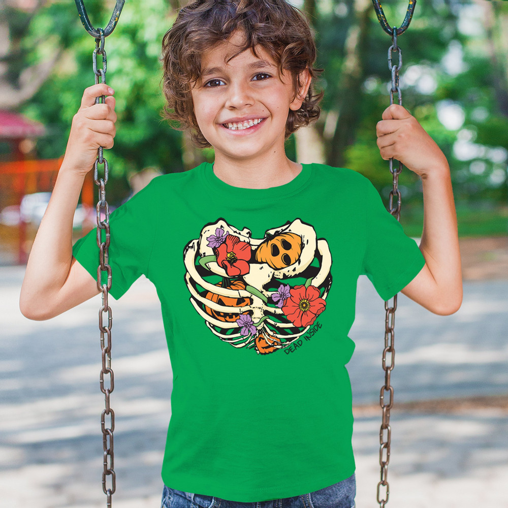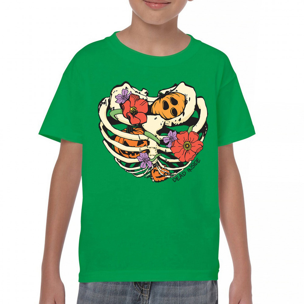 Celebrate Halloween with a quirky and cute design featuring a skeleton ribcage filled with pumpkins and flowers. Perfect for spooky season lovers!