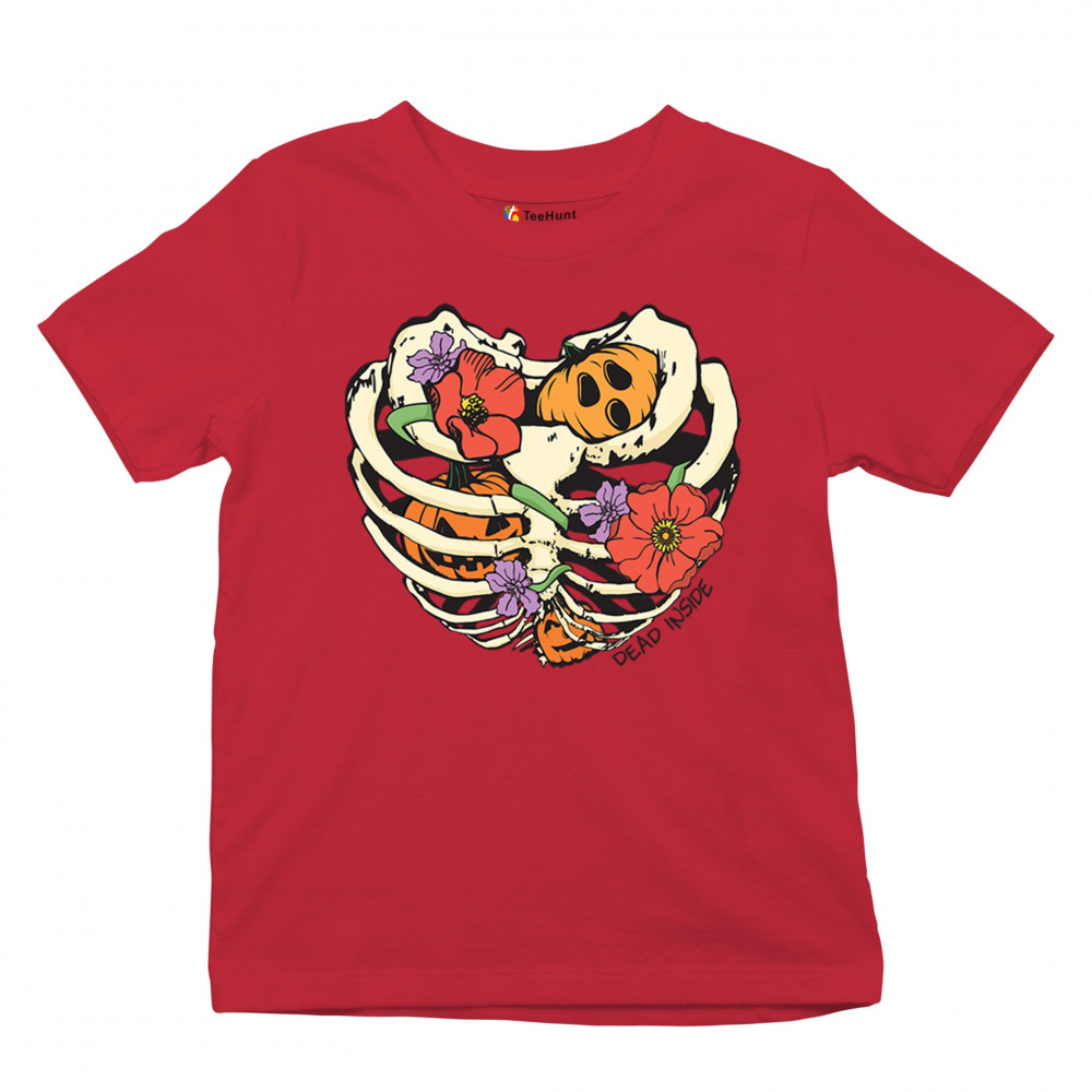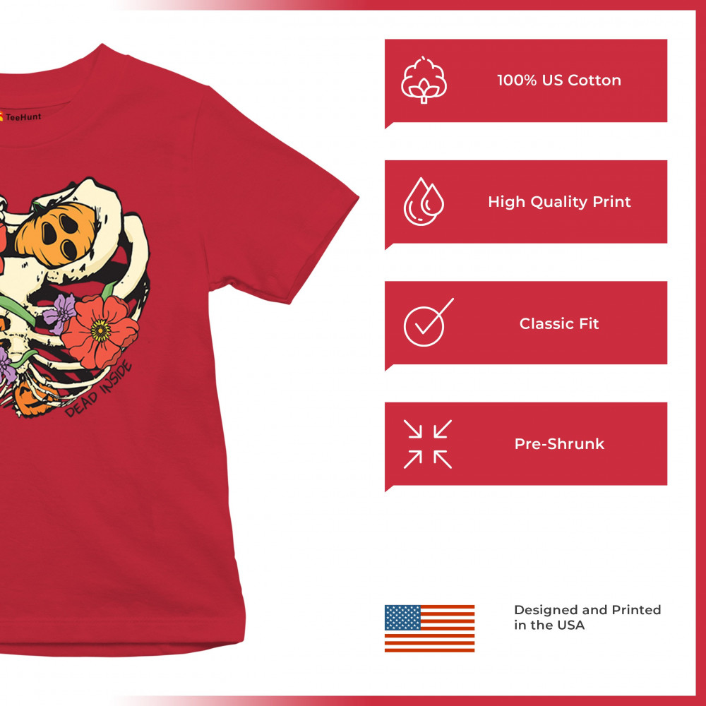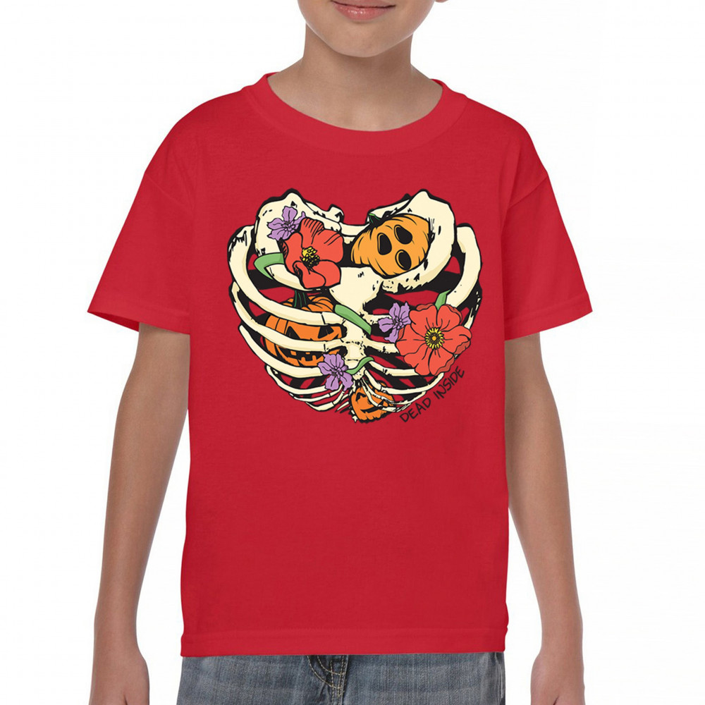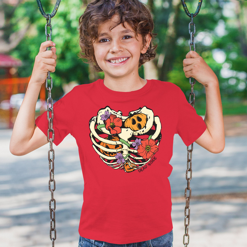 Celebrate Halloween with a quirky and cute design featuring a skeleton ribcage filled with pumpkins and flowers. Perfect for spooky season lovers!