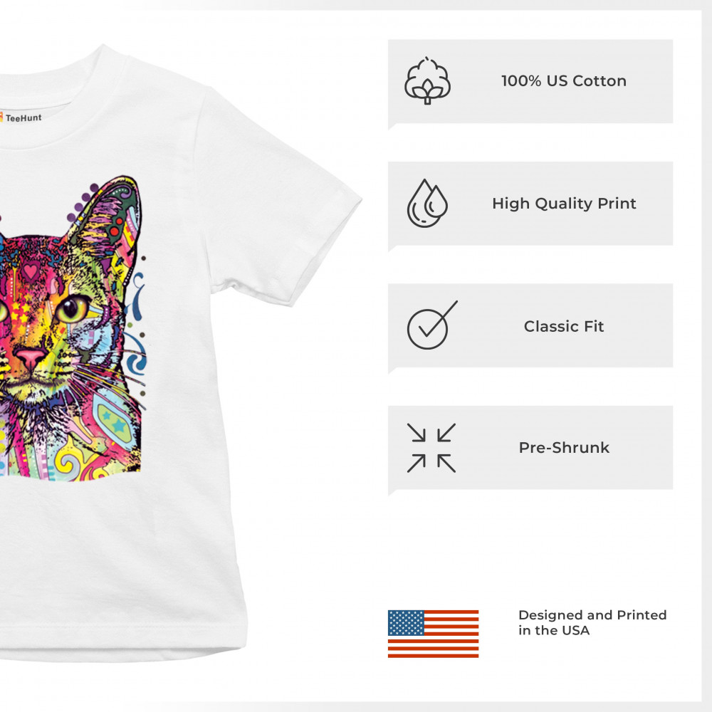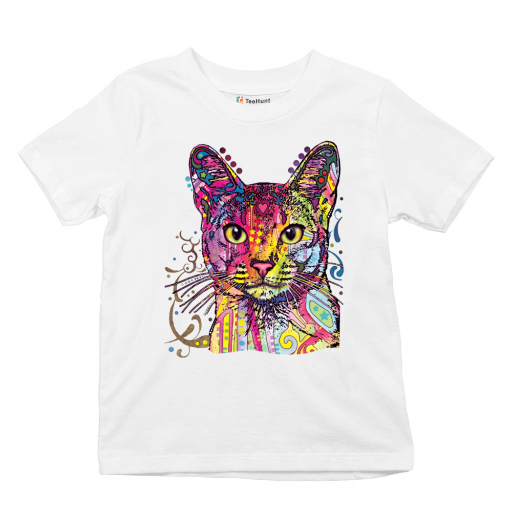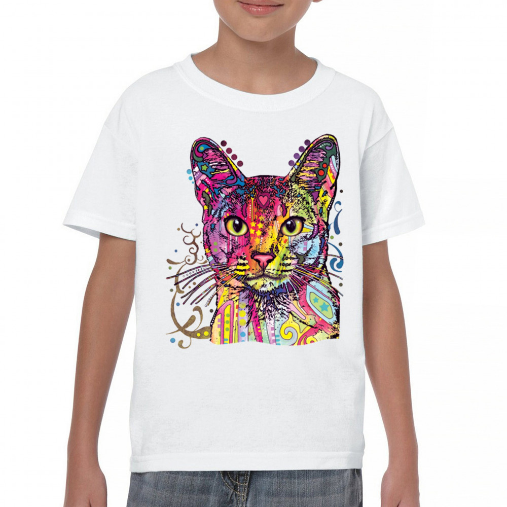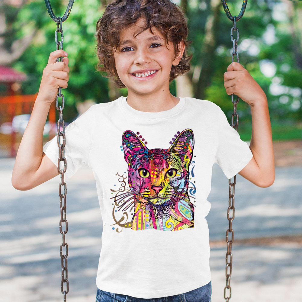 DEAN RUSSO ABYSSINIAN CAT youth t-shirt colorful cute kitten pet kids white