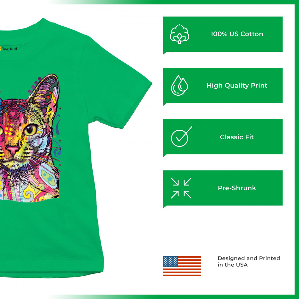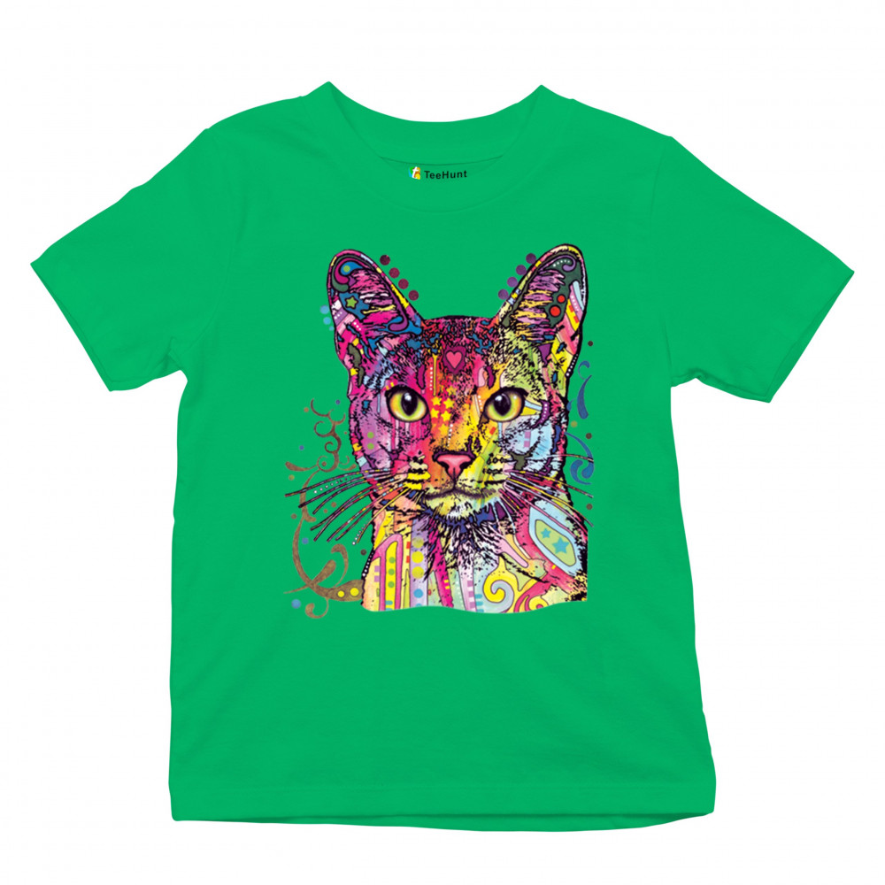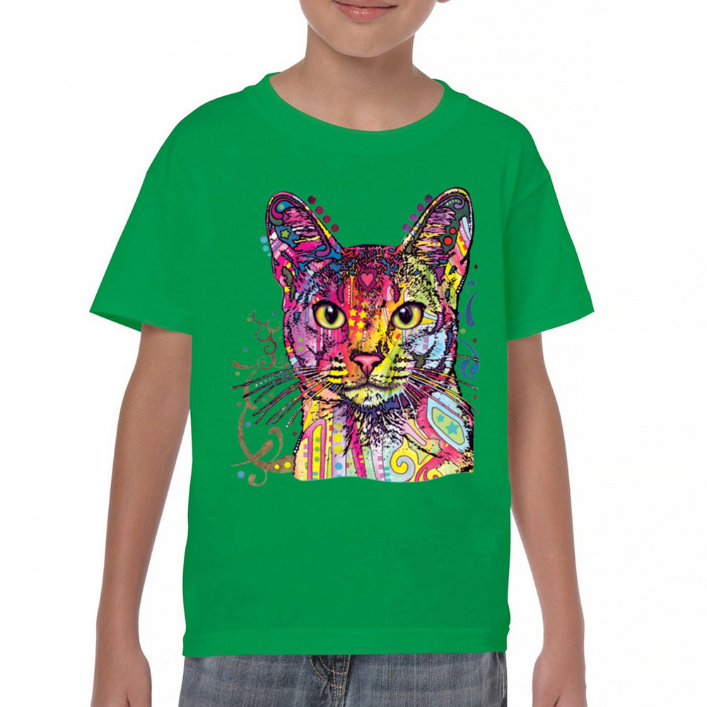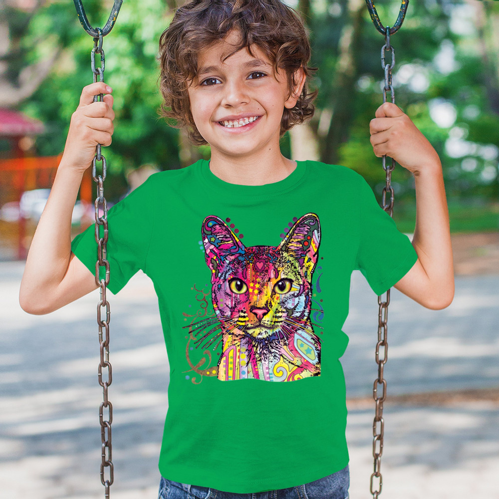 DEAN RUSSO ABYSSINIAN CAT youth t-shirt colorful cute kitten pet kids green