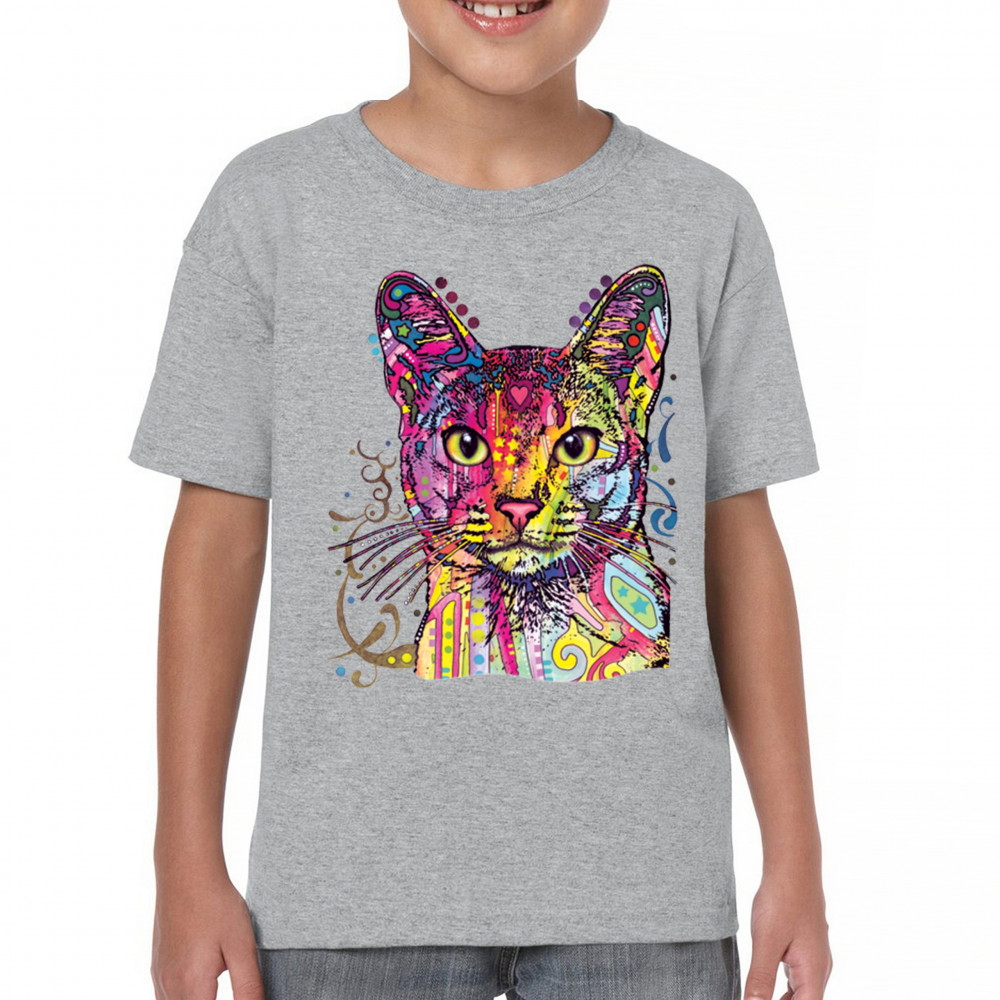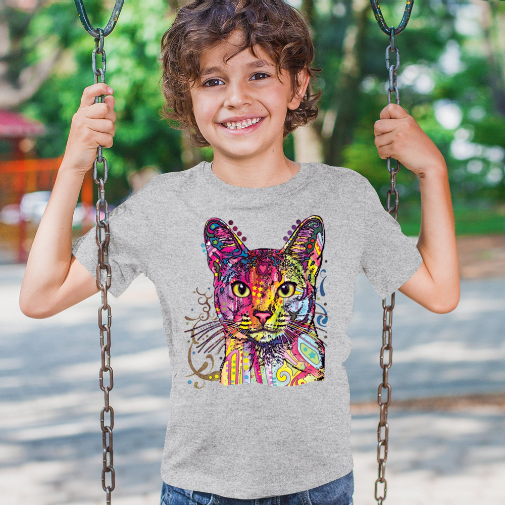 DEAN RUSSO ABYSSINIAN CAT youth t-shirt colorful cute kitten pet kids gray
