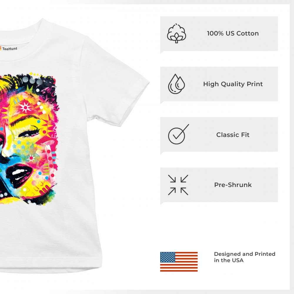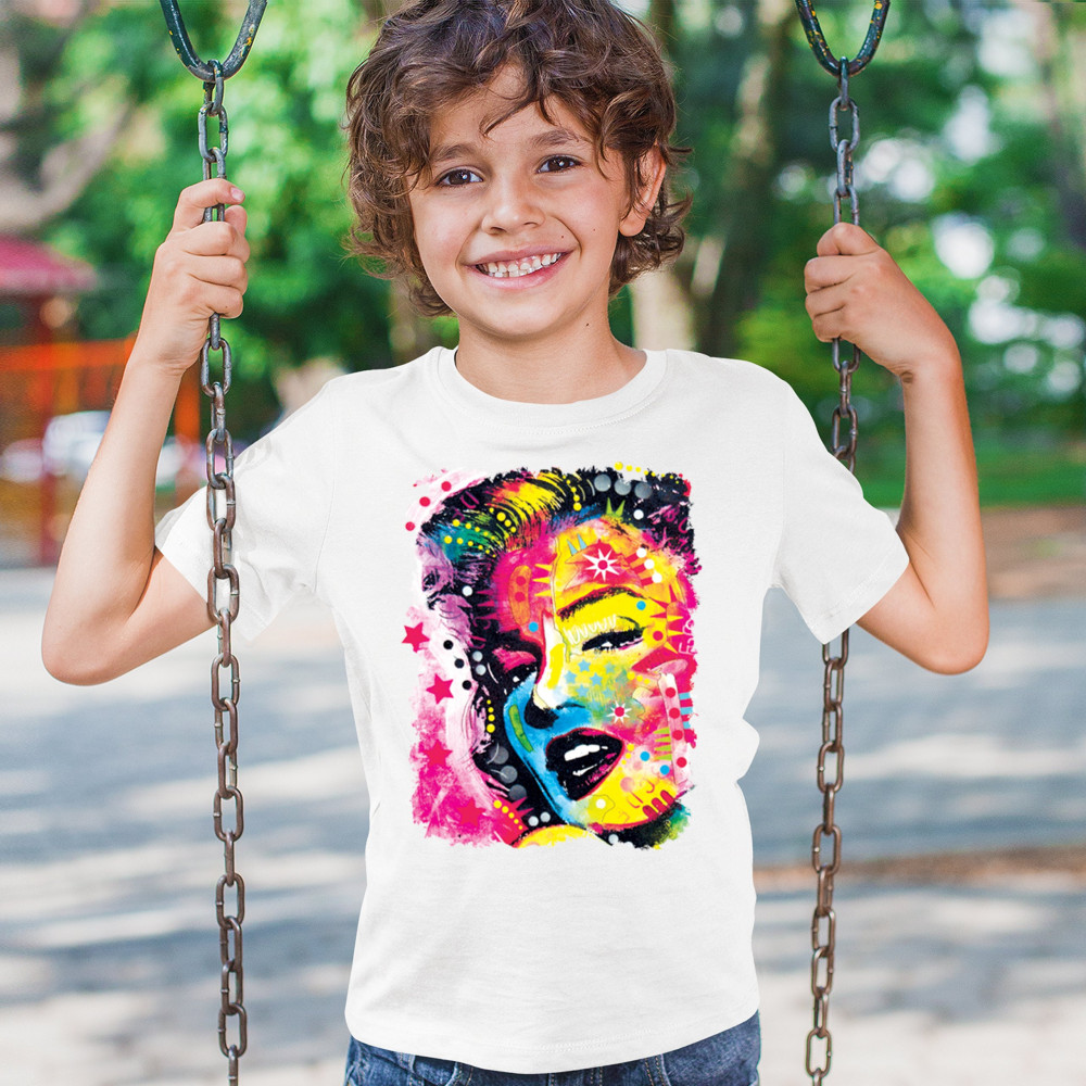 DEAN RUSSO COLORFUL MARILYN youth t-shirt neon hot symbol starlet kids white
