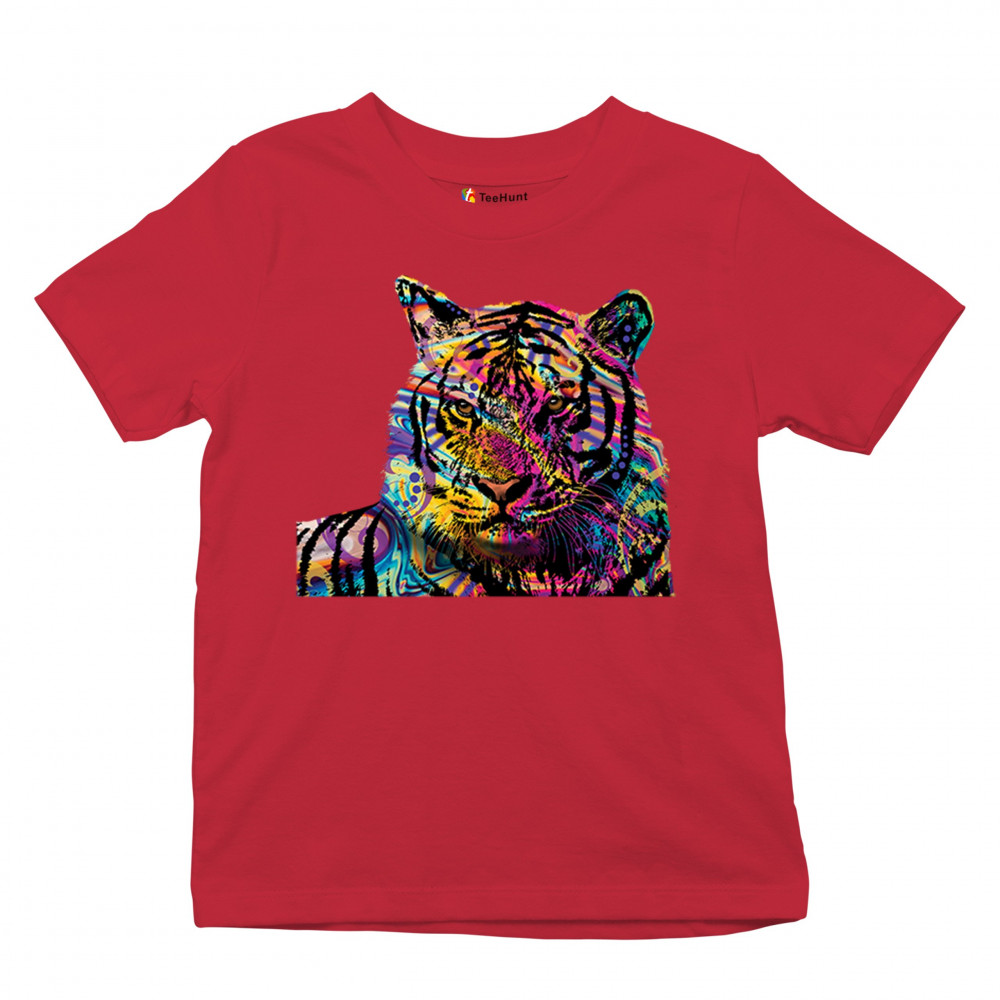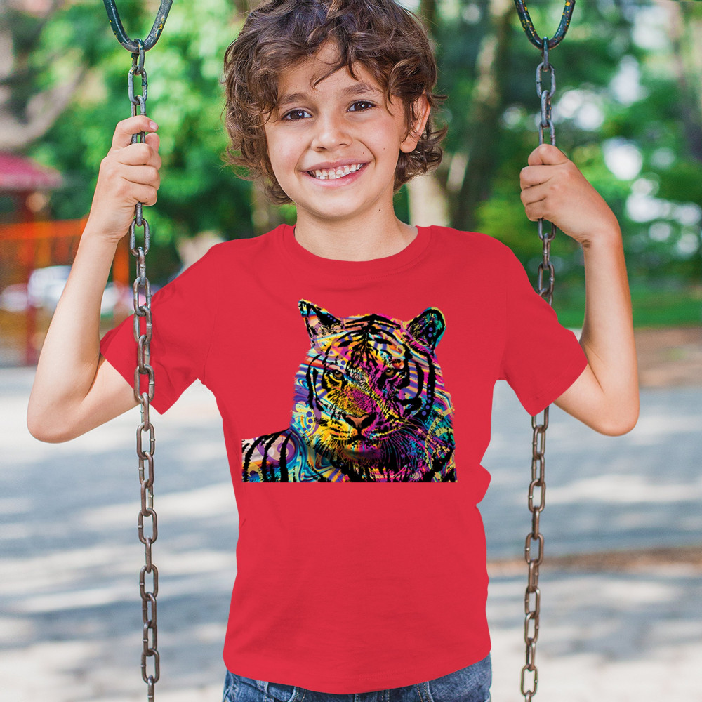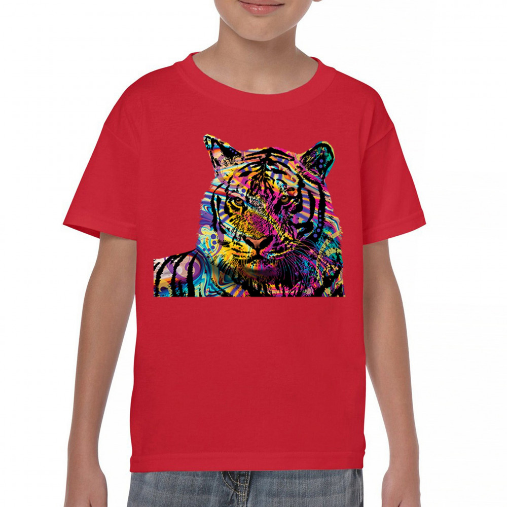 DEAN RUSSO COLORFUL NEON SIBERIAN TIGER youth t-shirt wild big cat kids red