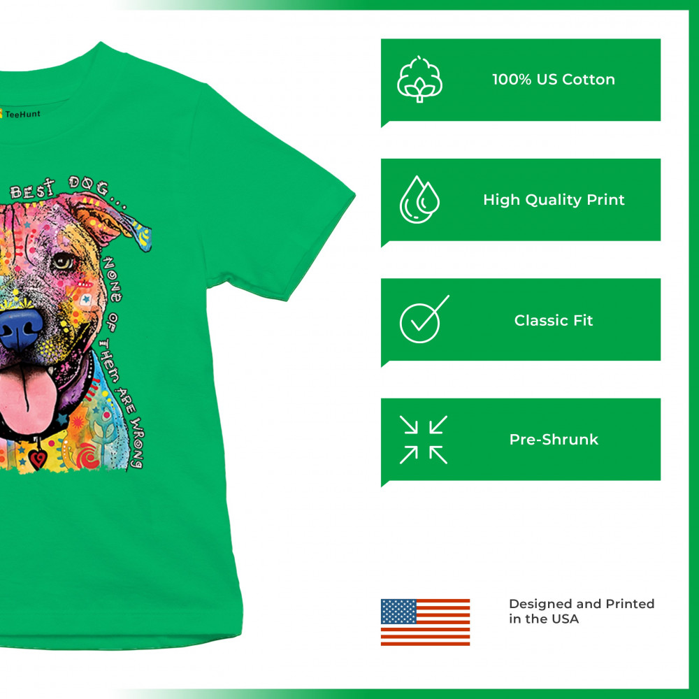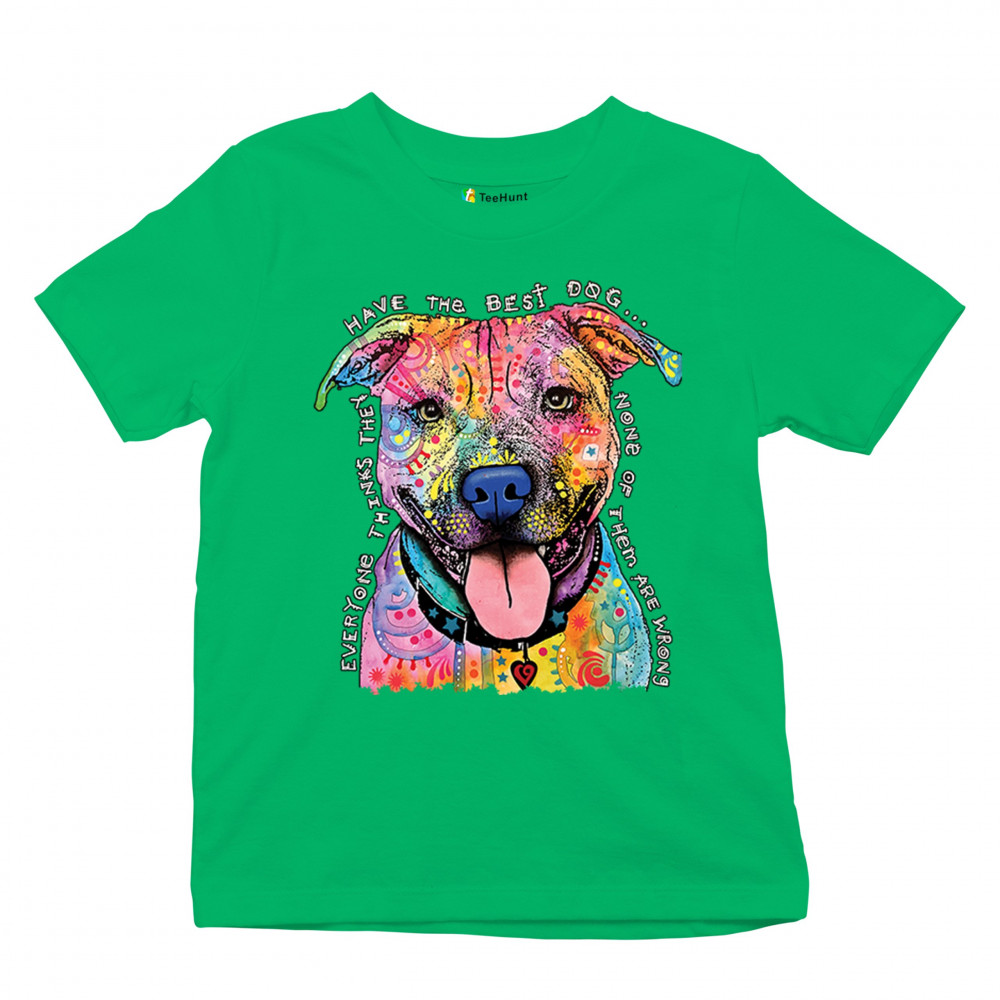 DEAN RUSSO COLORFUL PIT BULL youth t-shirt everyone has best dogs kids green