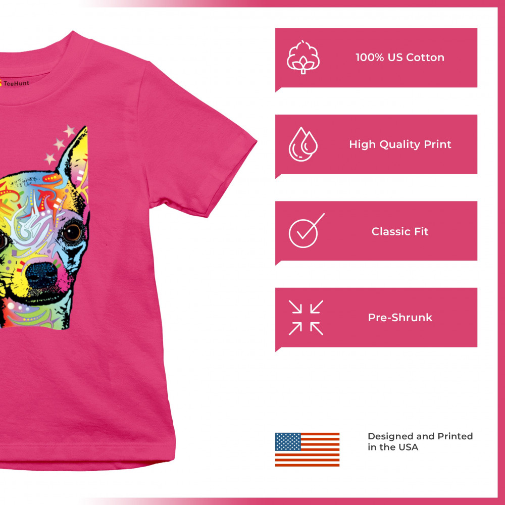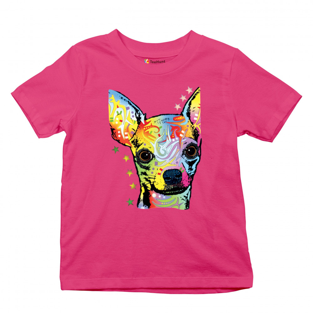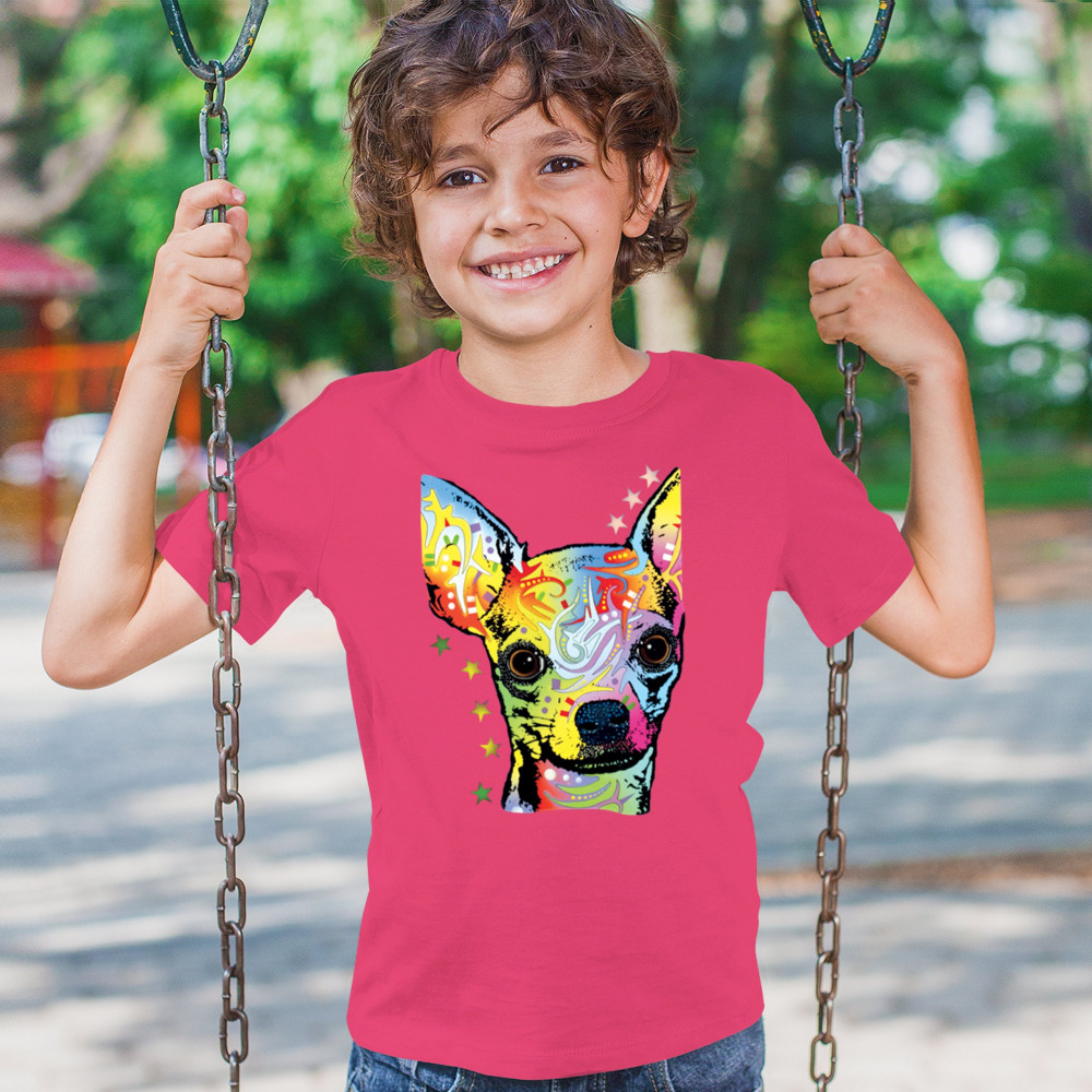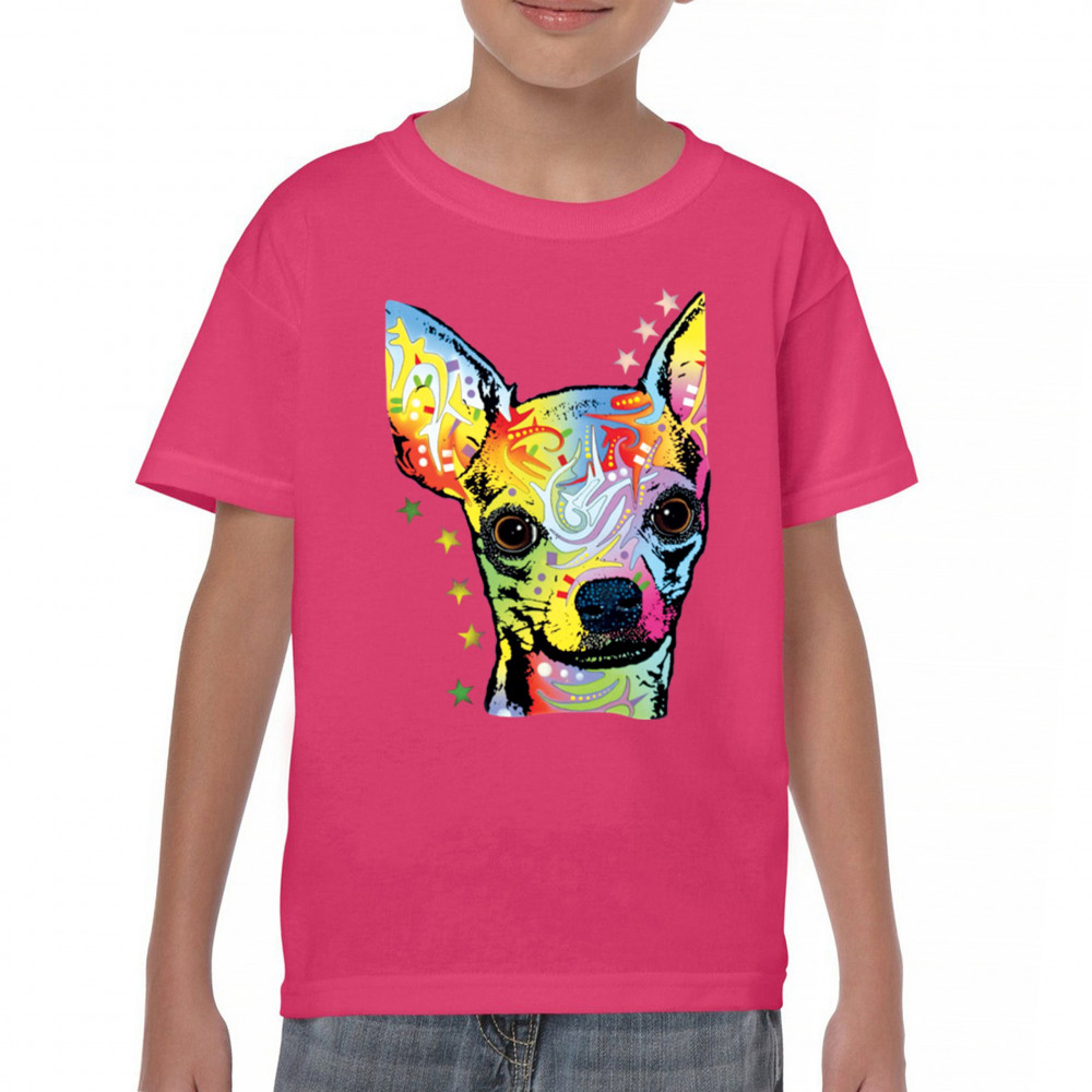 DEAN RUSSO CUTE CHIHUAHUA youth t-shirt neon colorful small dog pet kids pink