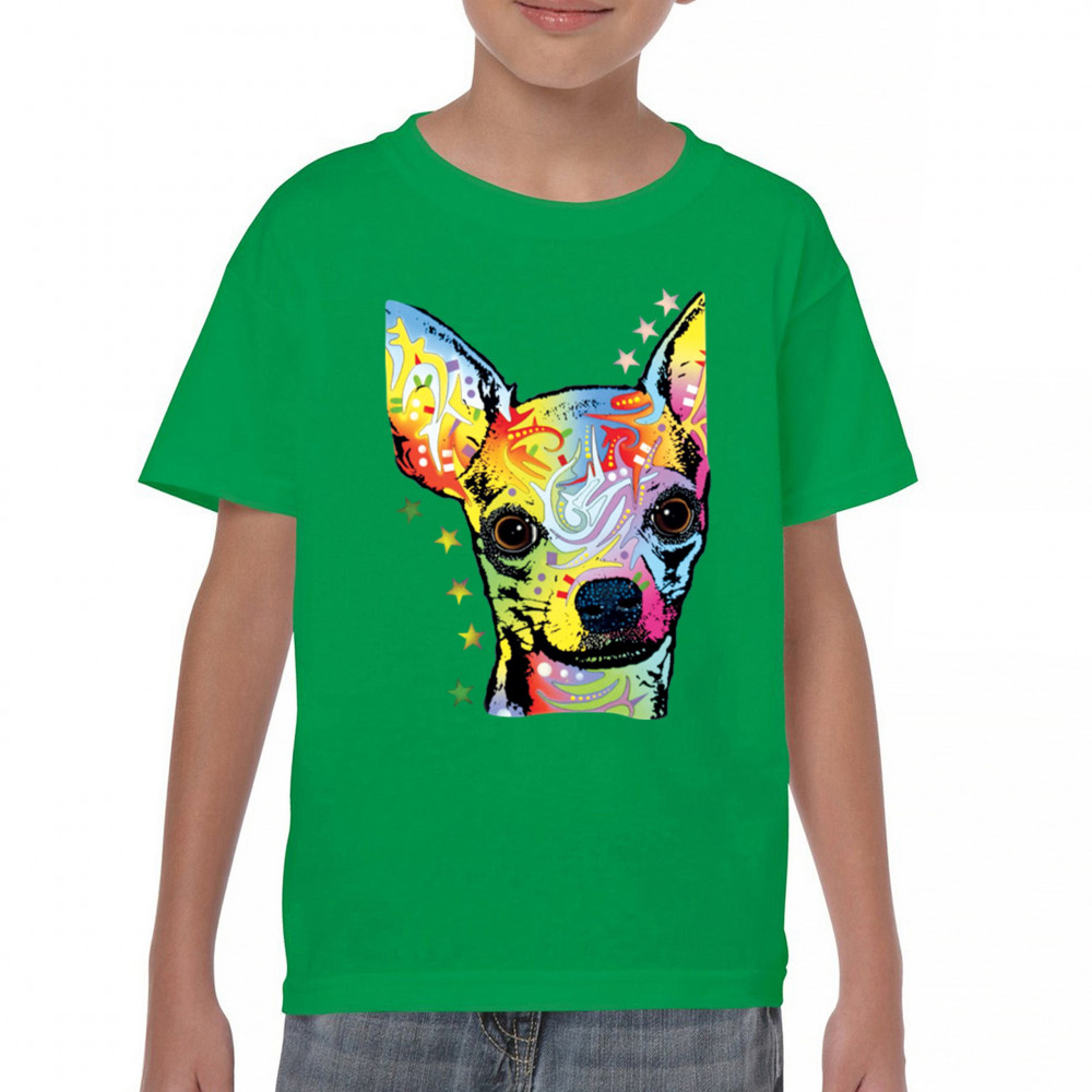 DEAN RUSSO CUTE CHIHUAHUA youth t-shirt neon colorful small dog pet kids green