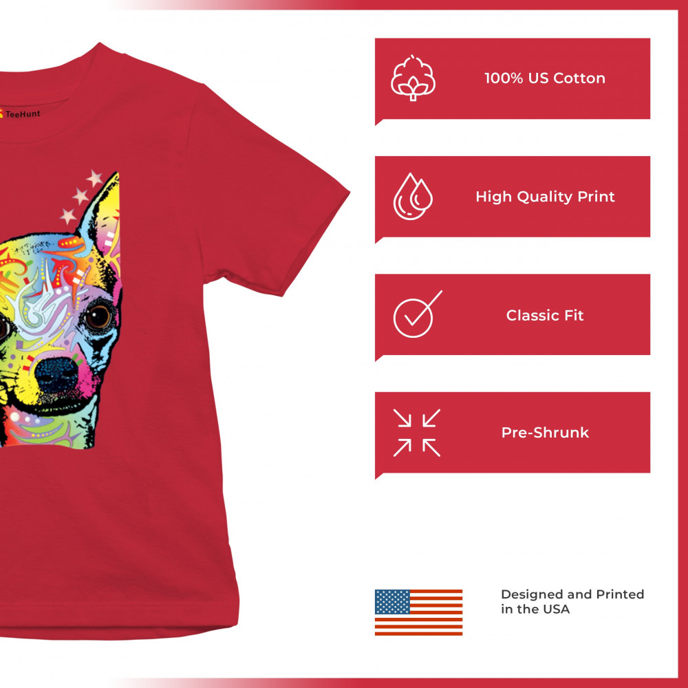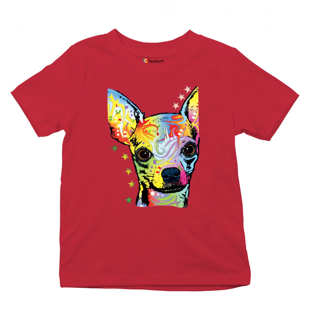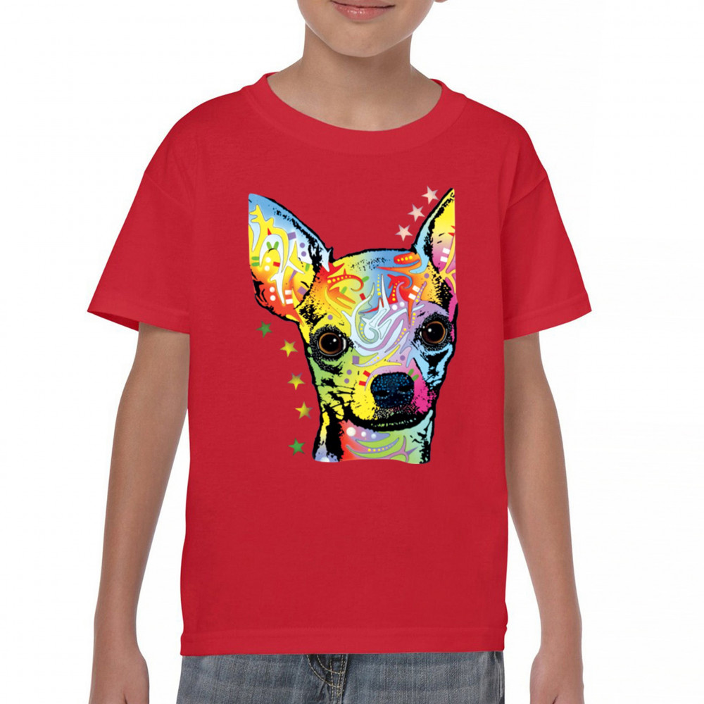 DEAN RUSSO CUTE CHIHUAHUA youth t-shirt neon colorful small dog pet kids red