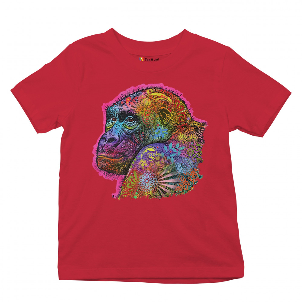 DEAN RUSSO CUTE GORILLA youth t-shirt colorful neon silverback ape art kids red