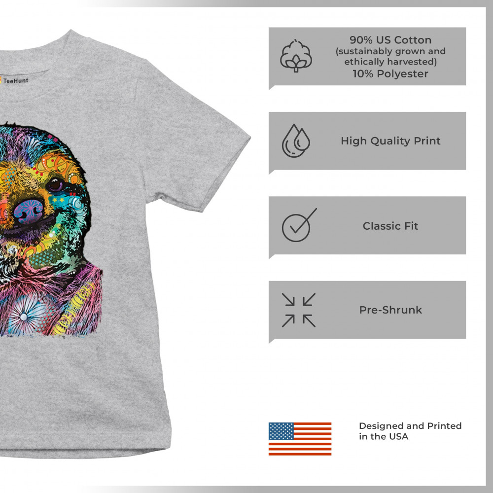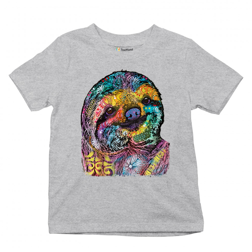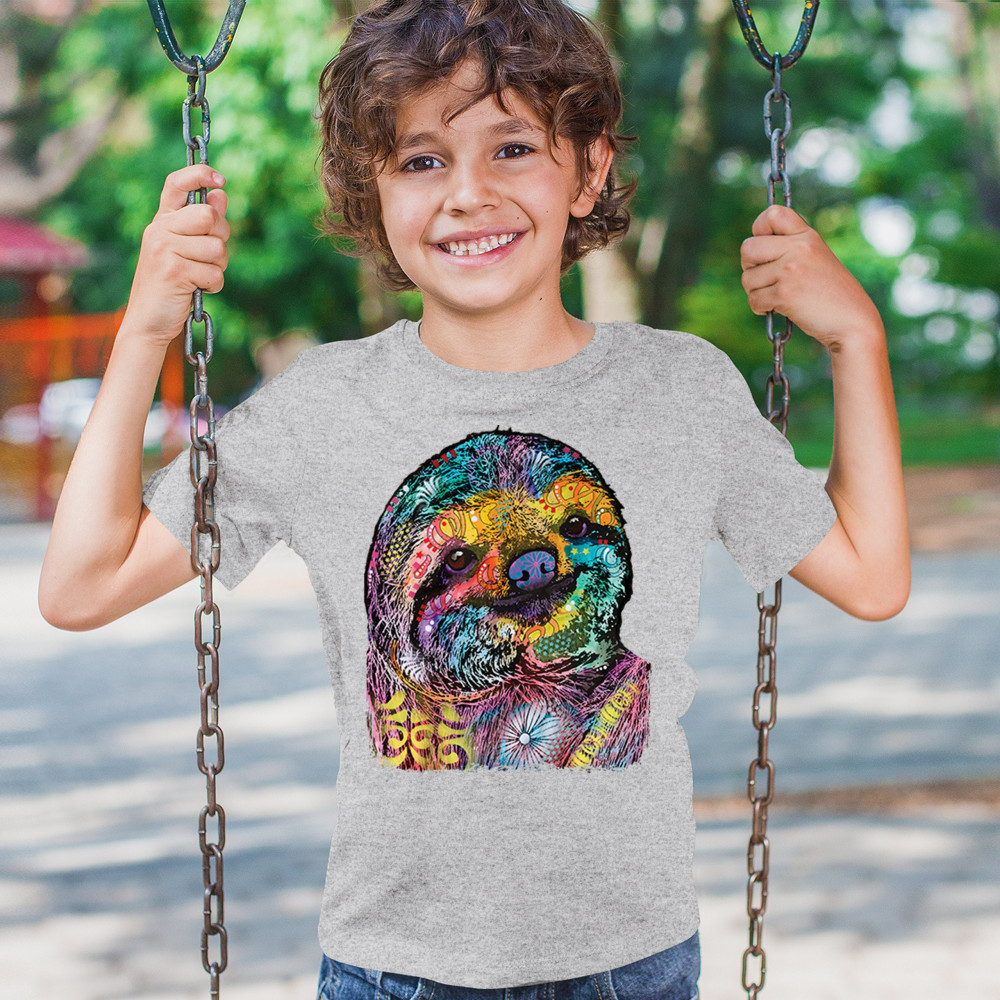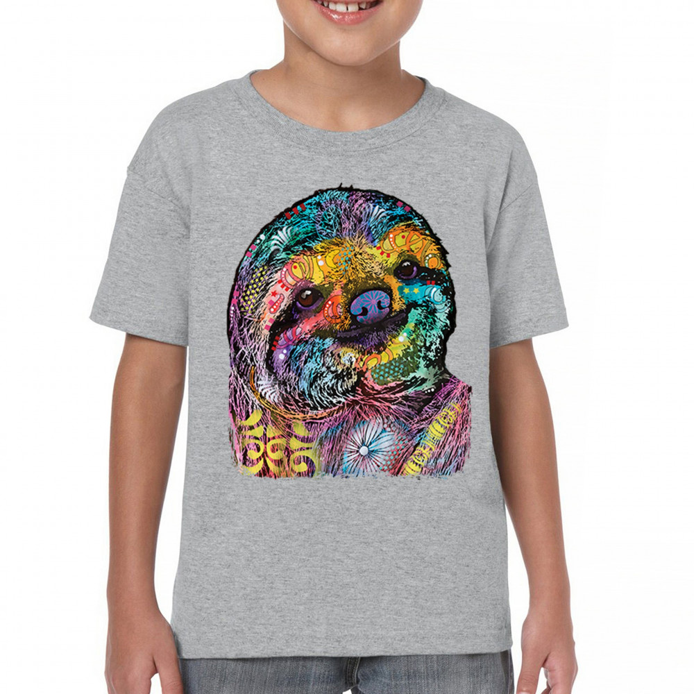 DEAN RUSSO CUTE LAZY SLOTH youth t-shirt funny wild life colorful kids gray