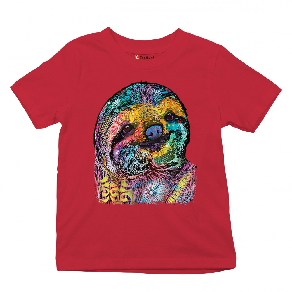 DEAN RUSSO CUTE LAZY SLOTH youth t-shirt funny wild life colorful kids red