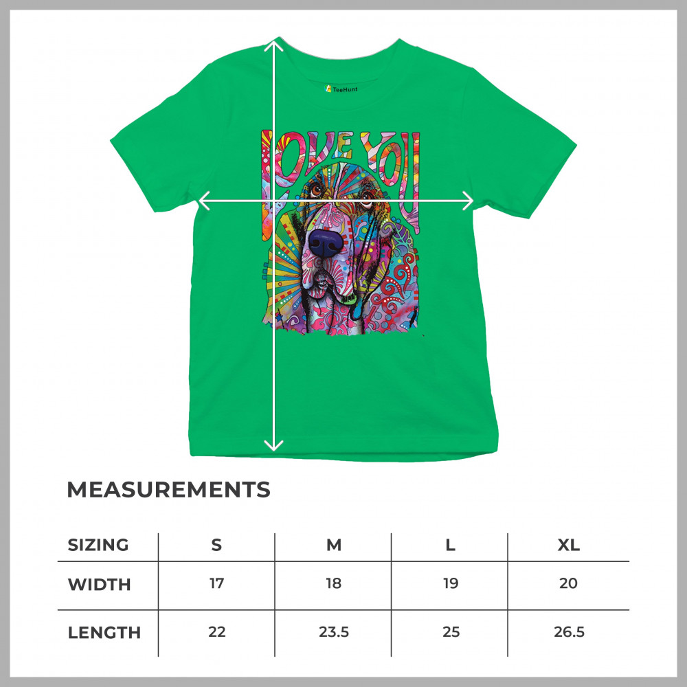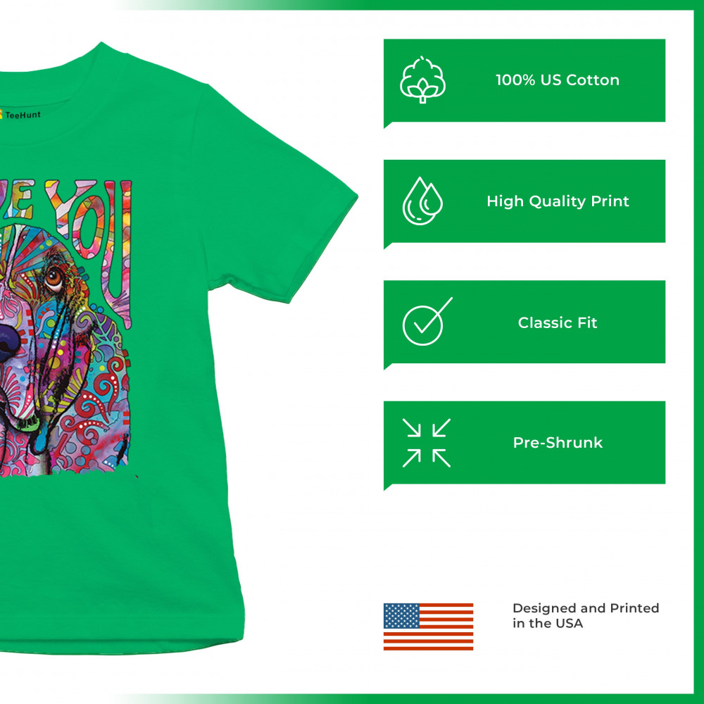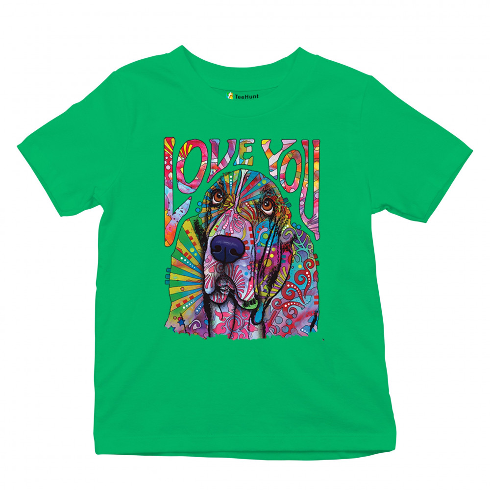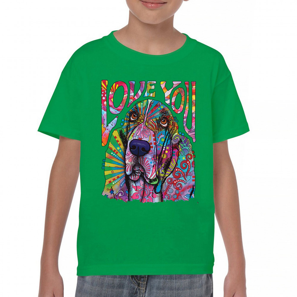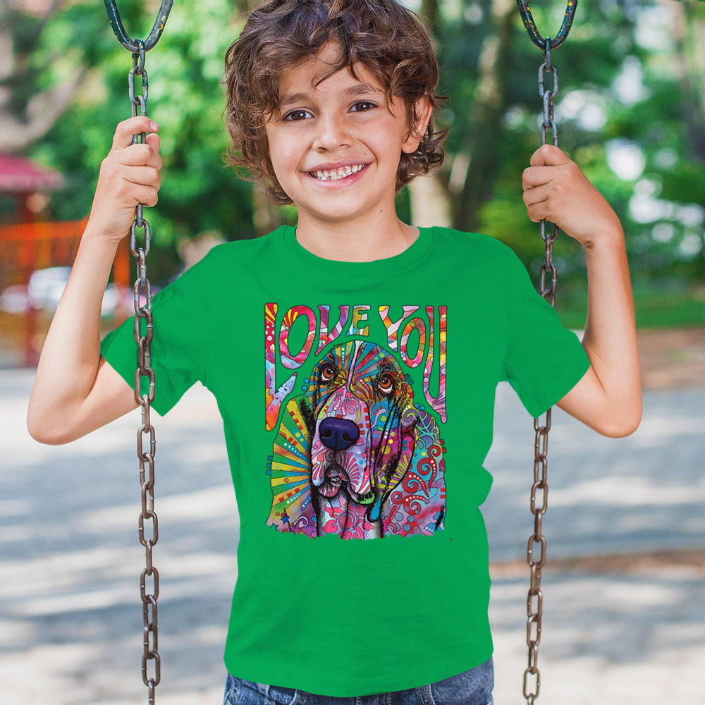 DEAN RUSSO CUTE LOVE YOU BASSET youth t-shirt colorful dog neon pet kids green