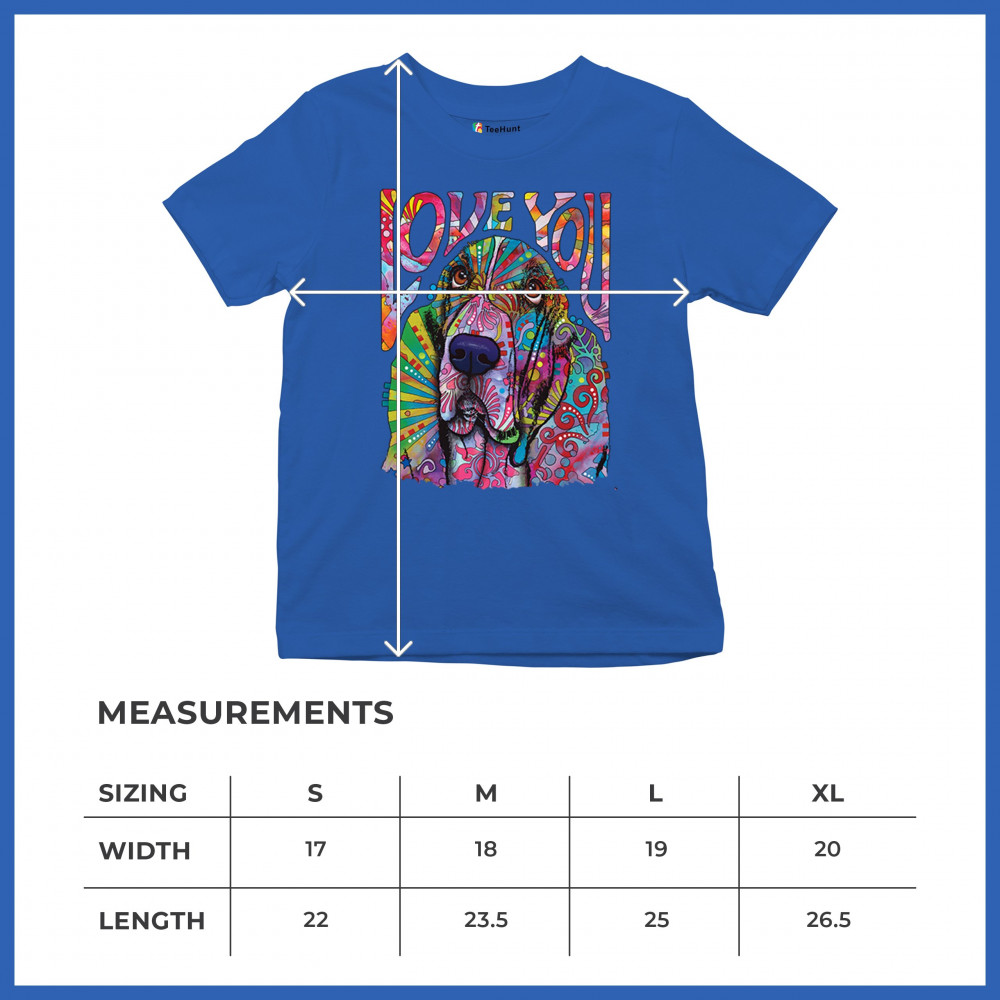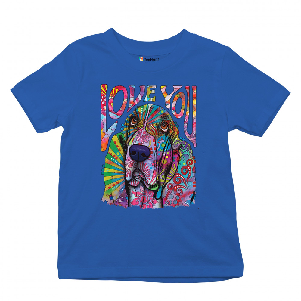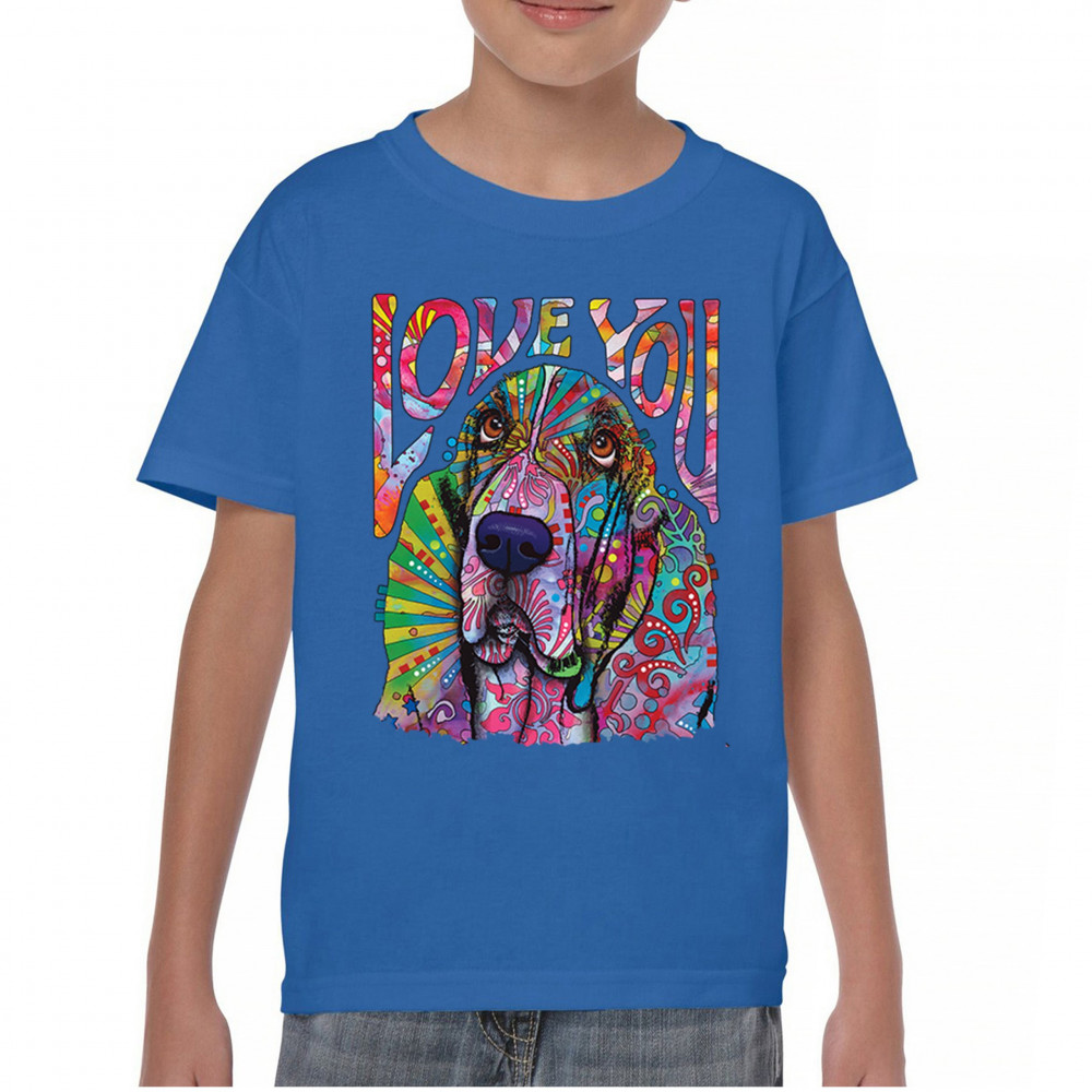 DEAN RUSSO CUTE LOVE YOU BASSET youth t-shirt colorful dog neon pet kids royal blue