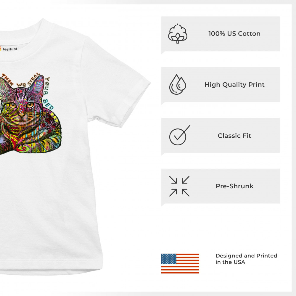 Dean Russo Colorful Cat First We Steal Your Heart Then We Steal Your Bed