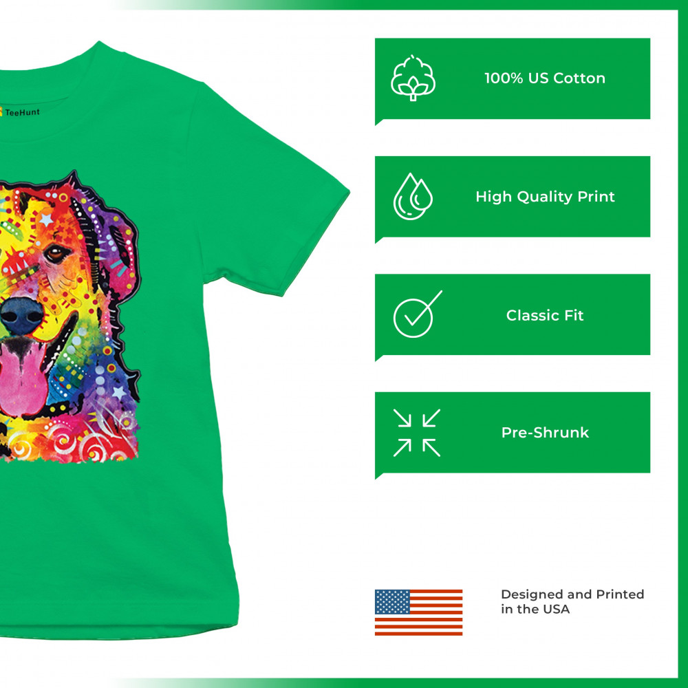 DEAN RUSSO CUTE NEON DOG youth t-shirt rescue adopt a pet colorful pet kids green