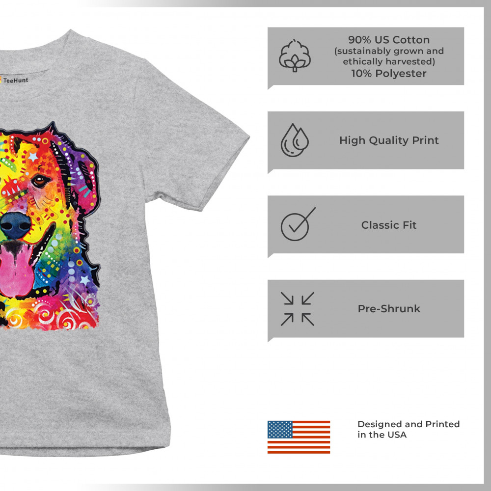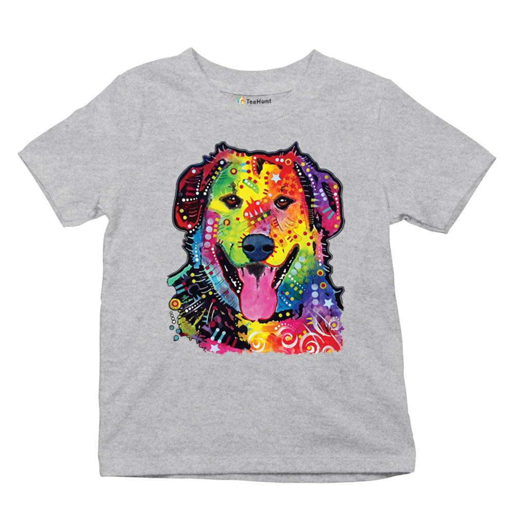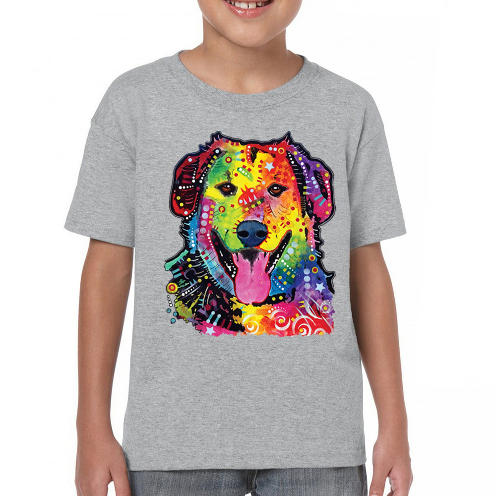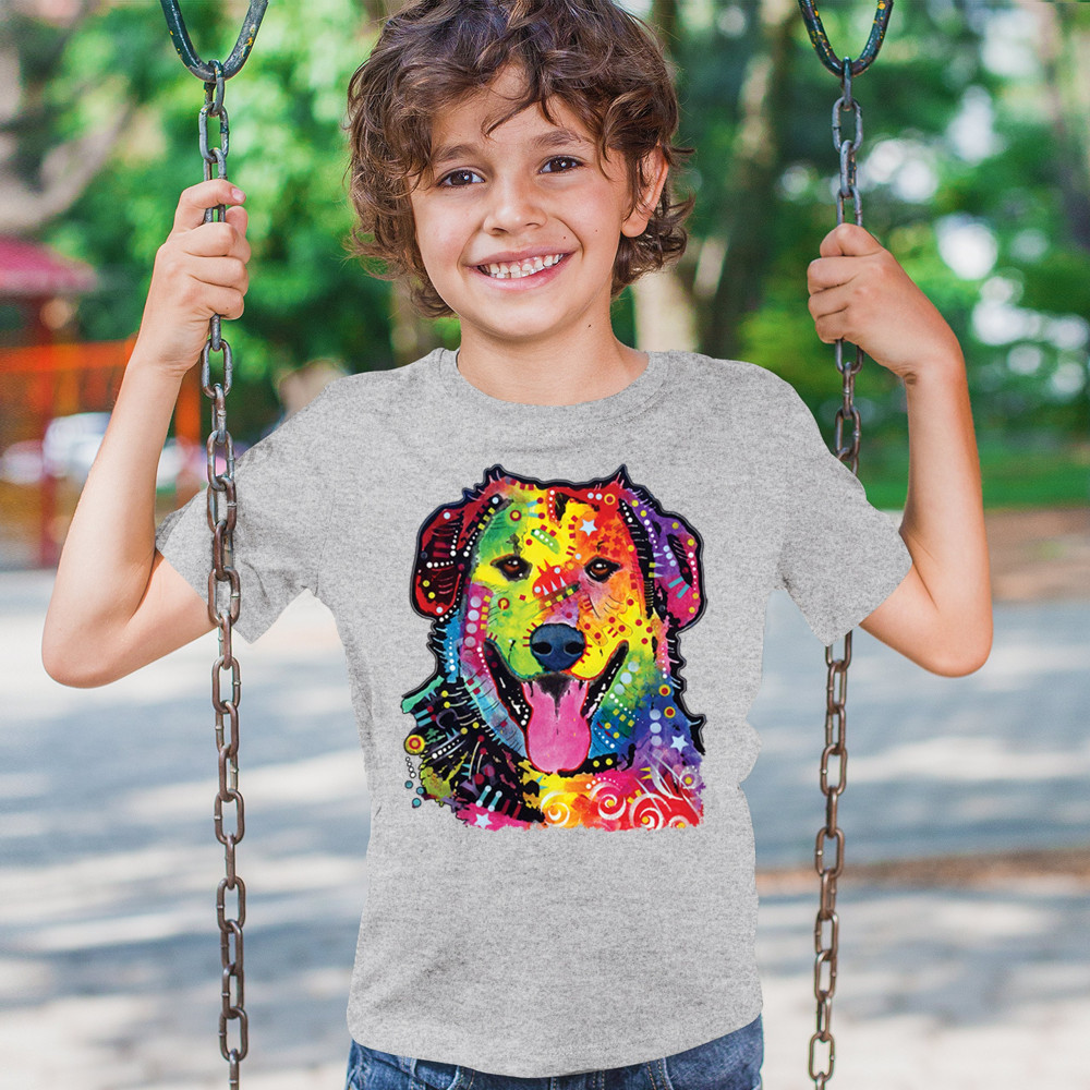 DEAN RUSSO CUTE NEON DOG youth t-shirt rescue adopt a pet colorful pet kids gray